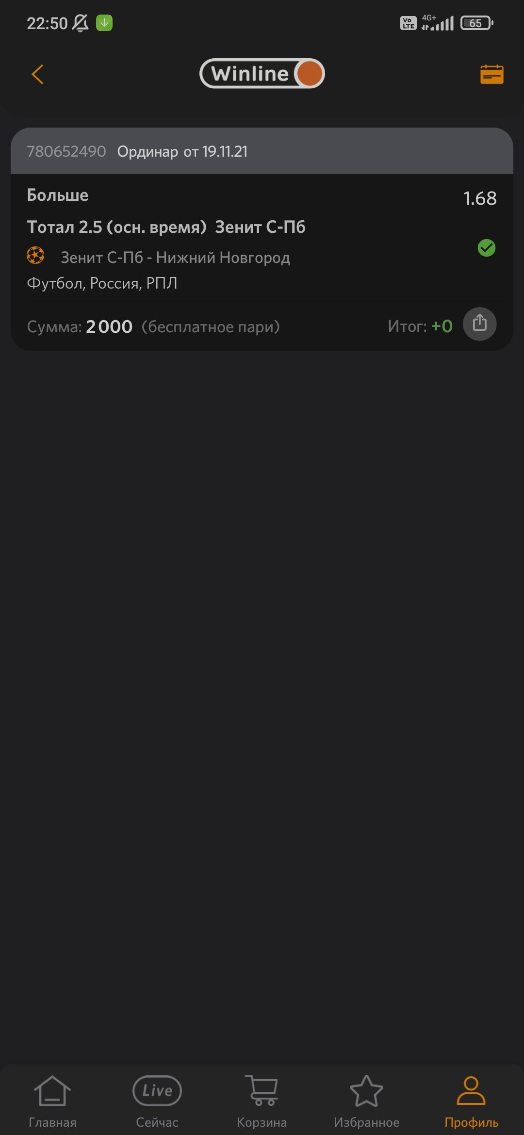 Дали фрибет 2000,так как новый пользователь, поставил на ставку ,ставка выиграла, пишет +0,интересно почему?