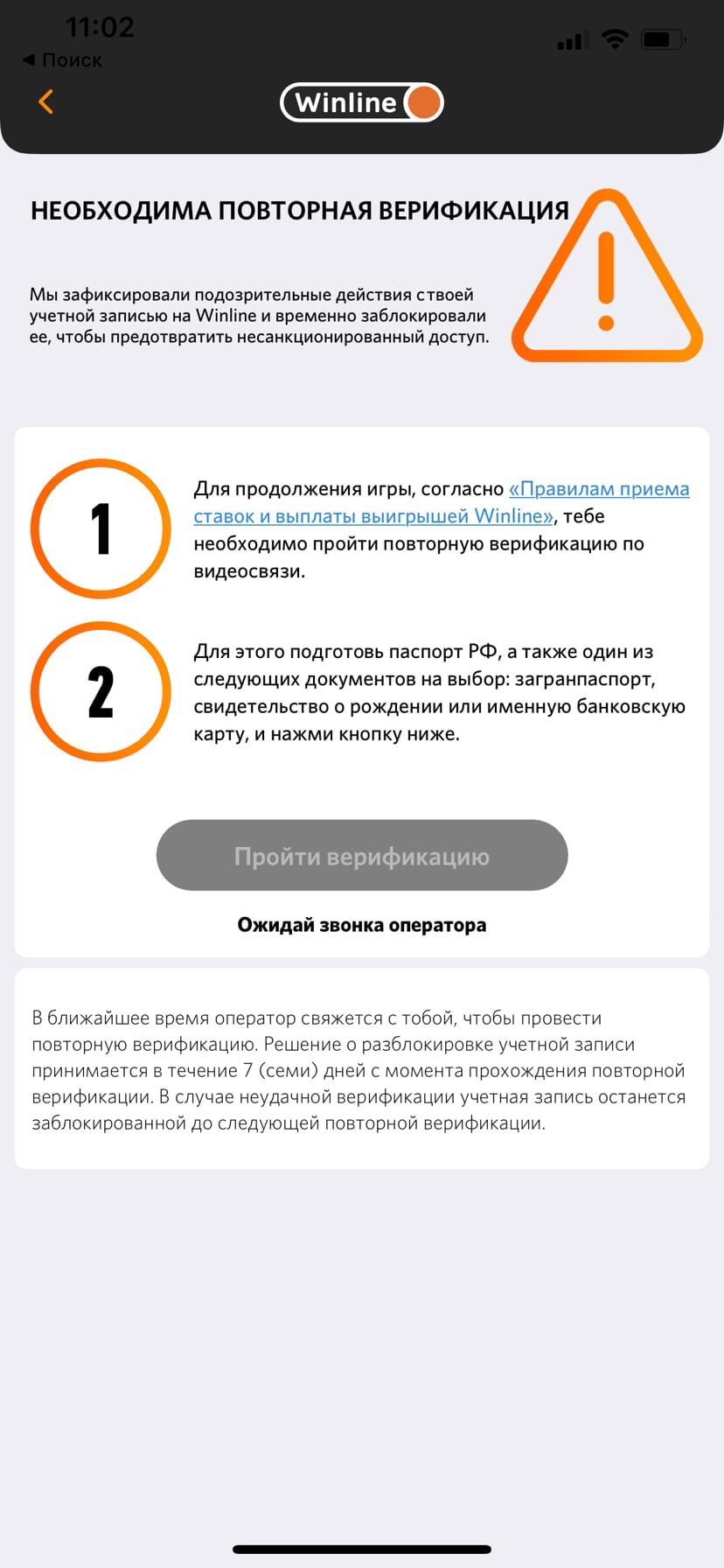 Блокировка вывода средств - повторная верификация