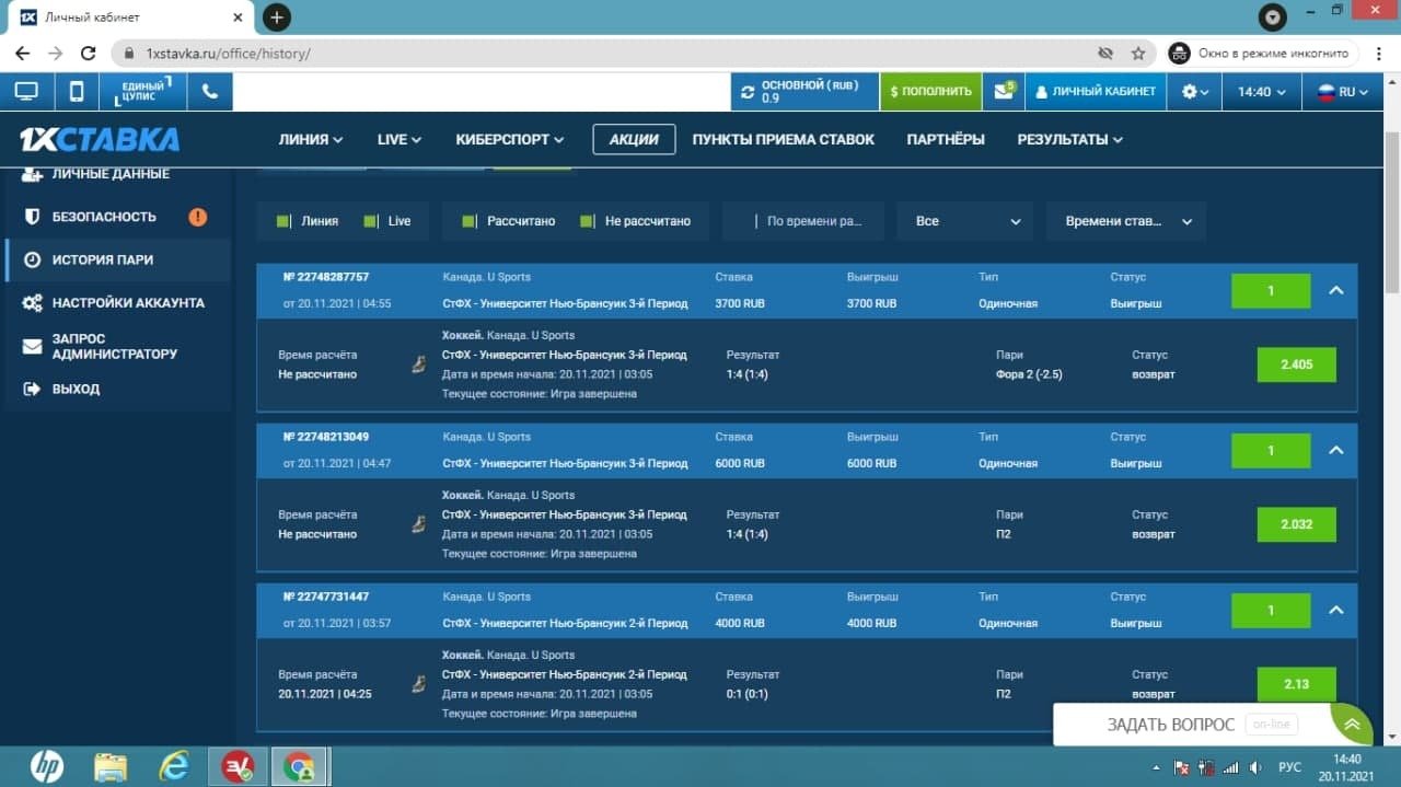 3 ставки рассчитали с кф 1, хотя кф были везде 2 и чуть больше, выигрышные.