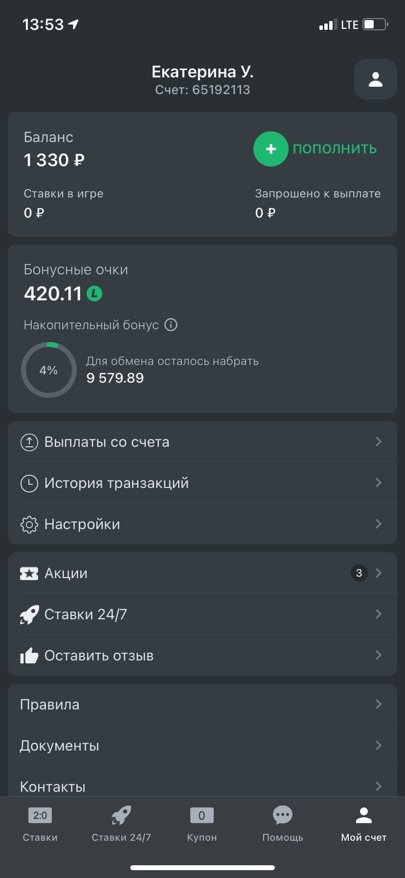 Начала делать ставки на леонбет, начала проходить проверку, просили фотографию с надписью, раза с 5-го им подошло качество, после попросили с паспортом/листком и чтобы виден был личный кабинет ЛеонБета, на селфи самой технически это не сделать, я попросила сфотографировать своего молодого человека (после был вопрос при звонке оператора "кто вас фотографировал, почему, помогал ли он вам выбирать на что ставить", документы я отослала 1-го ноября, началась проверка, заблокировали личный счёт, 19-го назначили звонок, позвонили. Оператор сверила личность по паспорту и начала задавать абсурдные вопросы и настойчиво требовать: пересядьте на диван, покажите комнату, с кем вы проживаете, какой у вас провайдер вайфая, сколько всего вы делали ставок (хотя они заблокировали счёт и 3 недели я не заходила в приложение, откуда это можно помнить). В промежуток всей проверки, на мои вопросы : "на какой стадии находится проверка - отвечали обычным шаблоном. После видео проверки, я спросила у тех.поддержки на какой стадии в итоге проверка, их ответ был как всегда - ожидайте, наша проверка может занимать до 30дн. пробую зайти на леонбет и вижу, что вместо баланса 11500 который был, осталось 1330. Документы предоставлялись несколько раз, по видео была сверка.