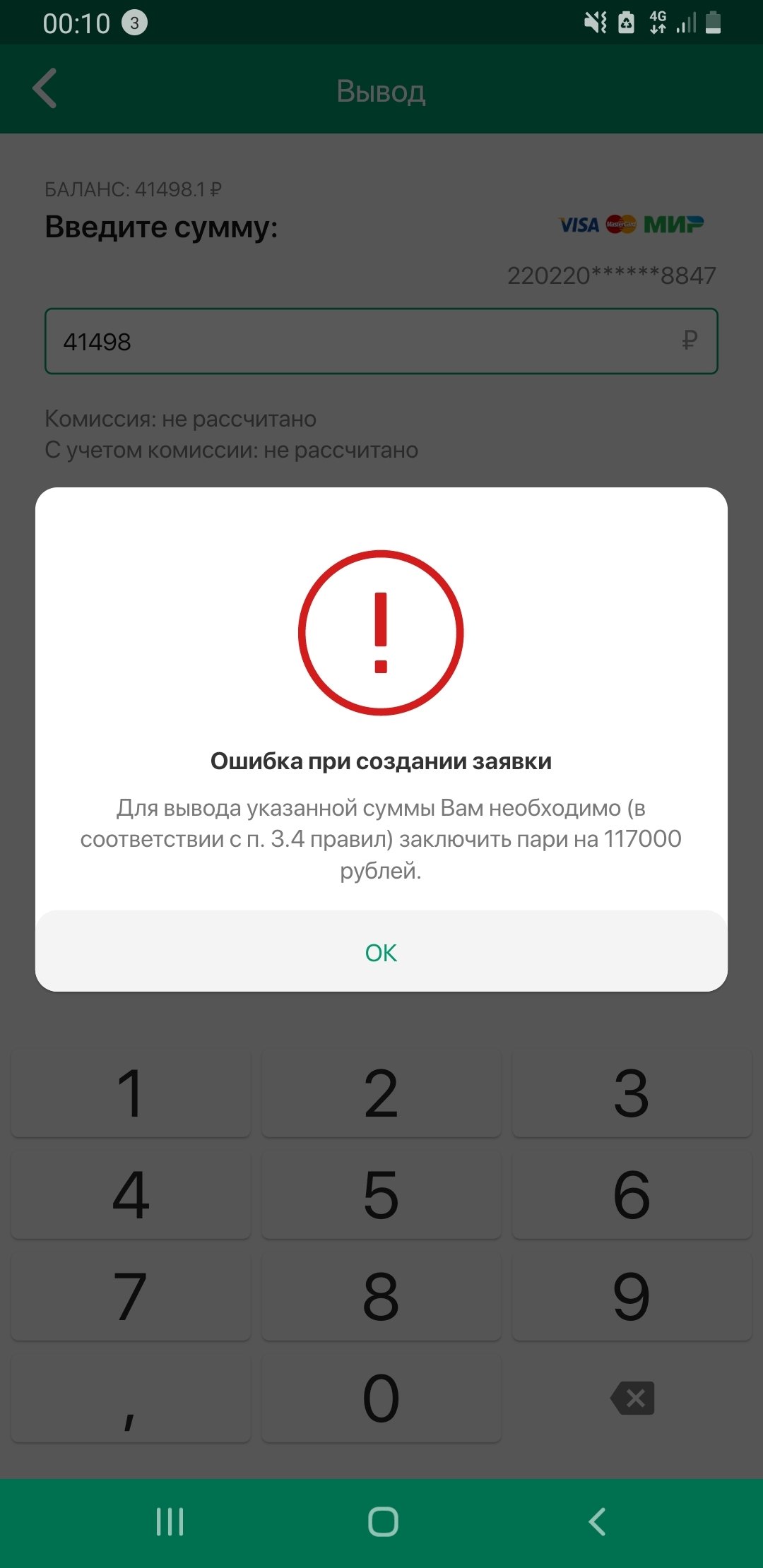 Положил средства в размере 39 тыс.(),хотел ставить на баварию.У конторны как оказалось был ограничитель на матчи ЛЧ(7500).Ставка сыграл, на счете лежит 41800,сразу после стал выводить,но выдает ошибку при создании заявки(для вывода указанной суммы вам необходимо в соответствии с п3.5 правил,заключить пари на 117 000).Звонил в поддержку,сказали аккаунт заблокирован,причину назвать не смогли. Для решения проблемы сказали явиться в офис лиги ставоки написать заявление на разблокировку аккаунта(рассмотрение до 30 дней). При чём 2 неделями ранее ,выводил средства в размере 6200 по фрибету. Как быть? номер пополнения (196527635), номер пари на 7500(349640096284)
