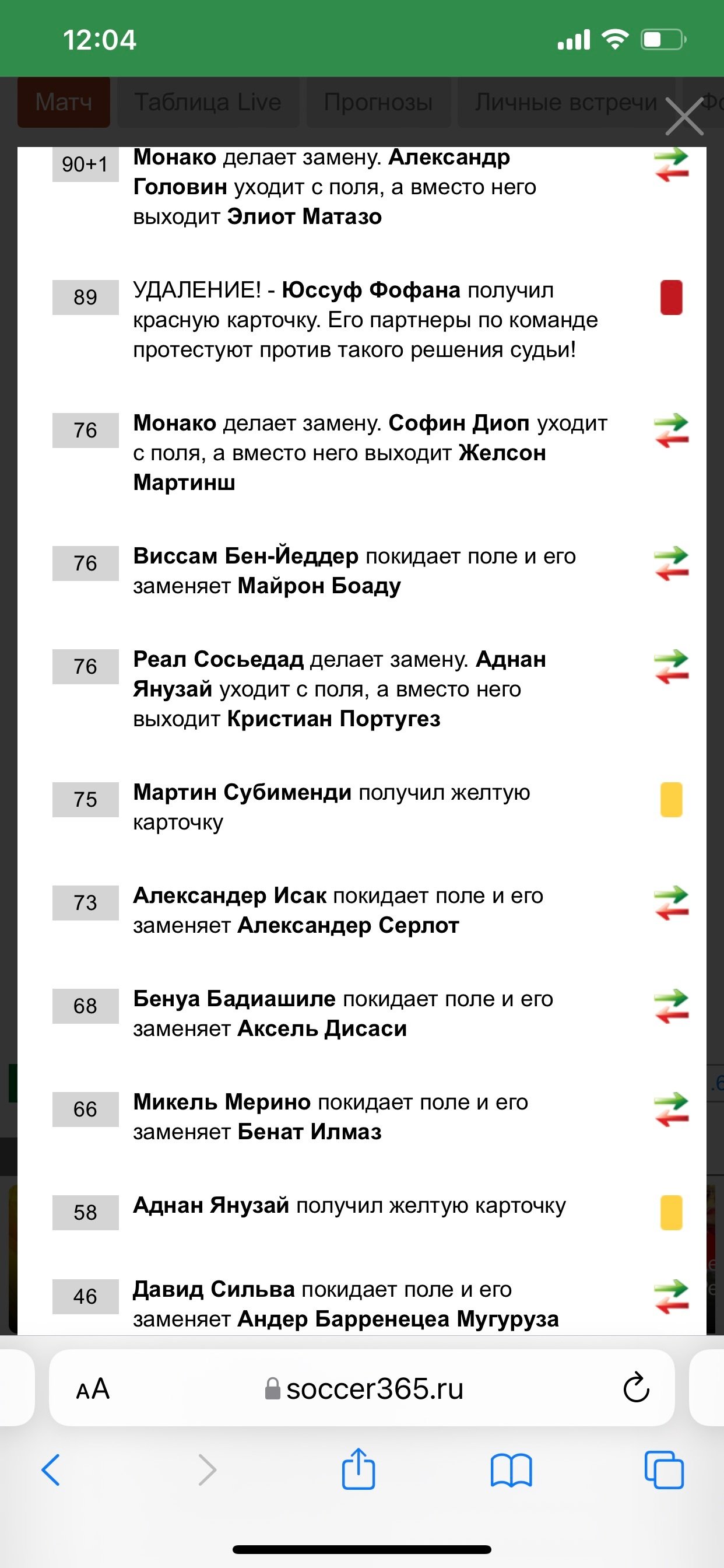 На 90+4 минуте была показана карточка вратарю Монако за затяжку времени. Она и оказалась седьмой в матче. Ставка рассчитана верно.