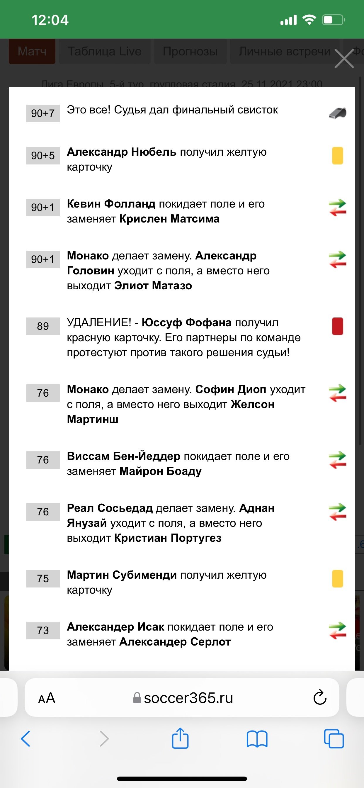 А почему информация с какого-то постороннего источника должна быть достоверна? Есть сайт УЕФА, на котором выложен официальный протокол матча. В протоколе 7 карточек. https://www.uefa.com/printoutfiles/competitions/uefacup/2022/E/E_2033240_fr.pdf