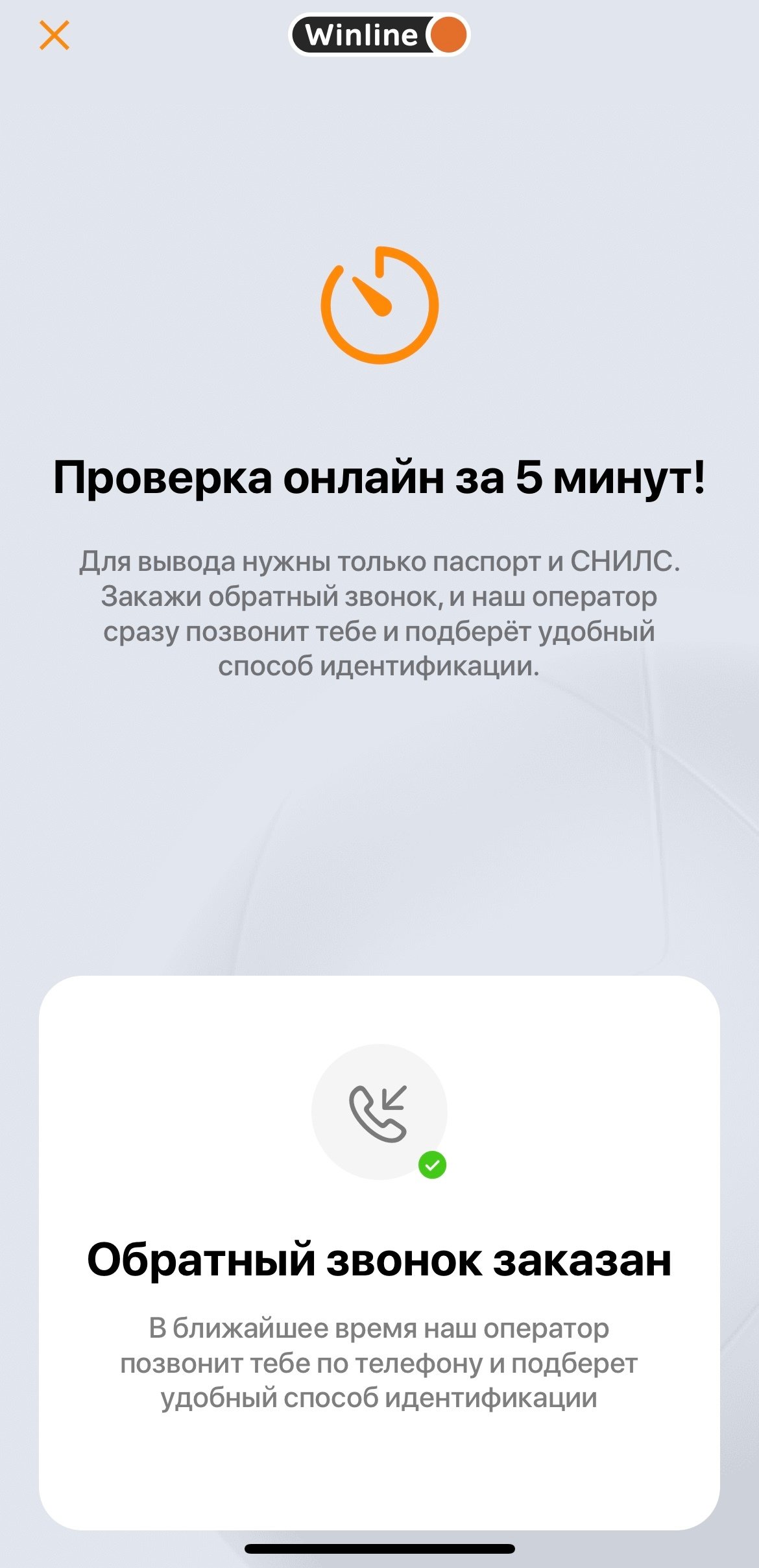 Зарегистрировалась в БК Winline. Получила фрибет. Выиграла с кф 3960. Запрашивала вывод на 4060. Позвонили один раз, сказали ждать звонка в течении часа. За весь день так и не позвонили. Наиграла потом ещё сумму с чистого выигрыша от фрибета( 4060). Теперь сумма 17996. Запрашивала вывод. Висит заголовок в приложении «Обратный звонок заказан». На следующий день весь вечер ждала звонка, не позвонили. Сегодня у них в приложении все так что так же. «Обратный звонок заказан», а никто так не звонит. По телефону им не дозвониться, на почту поняла что писать бесполезно, не отвечают.