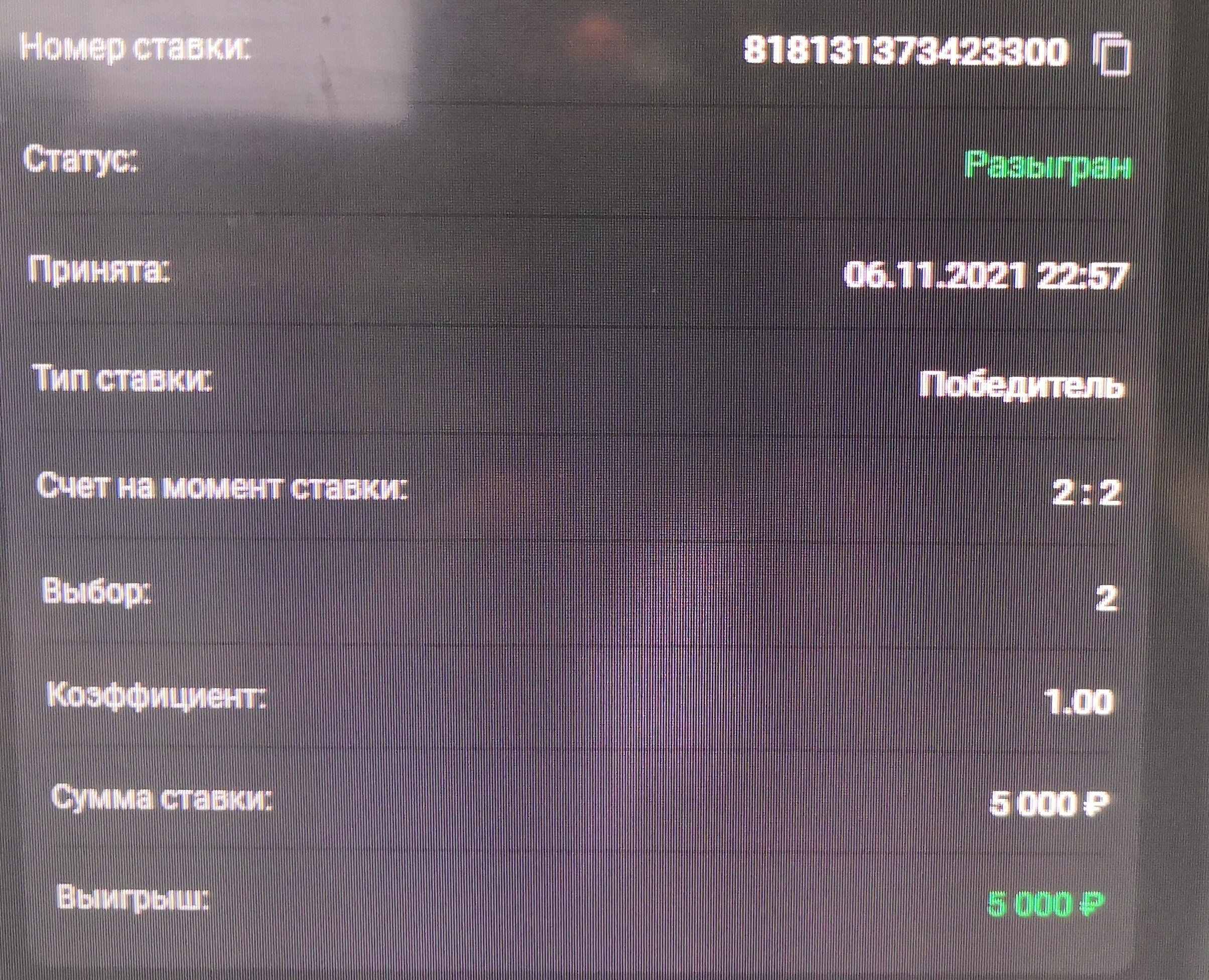 что ставка сделана корректно, но сделали возврат, это конечно мало на что