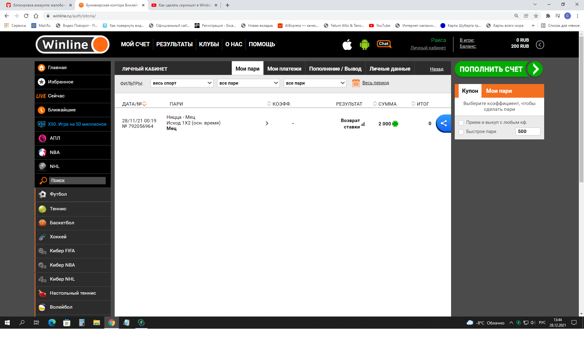 Выиграла ставка на 2000 фрибетах. Сын пополнил счет на 200рублей со своей карты, чтоб привязать карту банка. Прошла повторную верификацию по ватсапп, подтвердили все данные,обещали разблокировать аккаунт,но так в заблокированном виде и остался. Деньги ввести дали, а вывести нет. На них всегда жаловаться чтоль нужно?