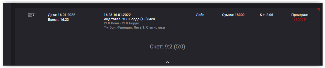 Хочу добавить, когда вчера я оспаривал результат, очень много источников говорили о том что я прав и был всего 1 угловой у Бордо. Но для расчета выбрали удобный источник для конторы, что бы не выплачивать конечно же)