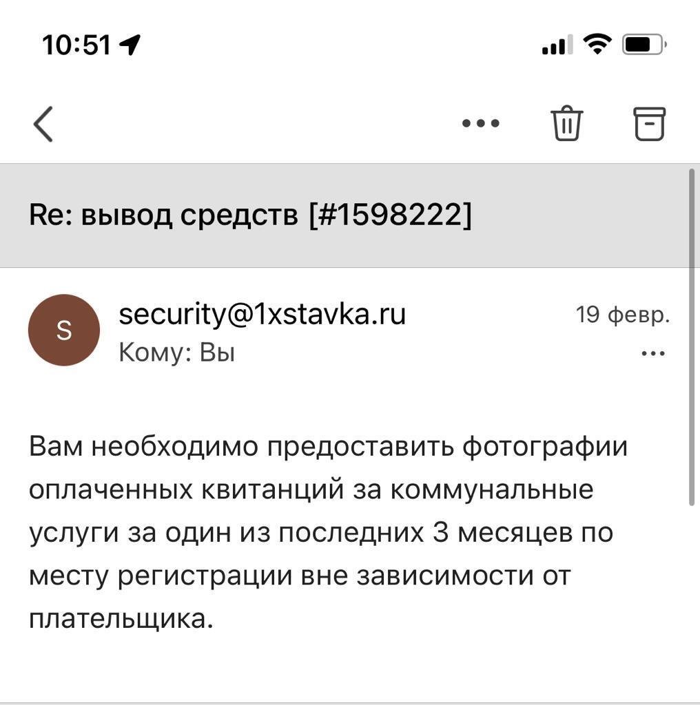 Добрый день, отправил запрос по I’d 36137583 в 1xСтавка на вывод средств, на что получил отказ. В службе безопасности запросили документы - все необходимые фото/скриншоты предоставил(включая скриншоты и выписки от банка по карте с которой совершён депозит). Служба безопасности перестала реагировать на мои сообщения какое то время, после чего запросили скриншот депозита карты, которой у меня нет. Предполагаю, что повод для отказа надуманный и контора не желает выплачивать деньги. Прошу помочь разобраться