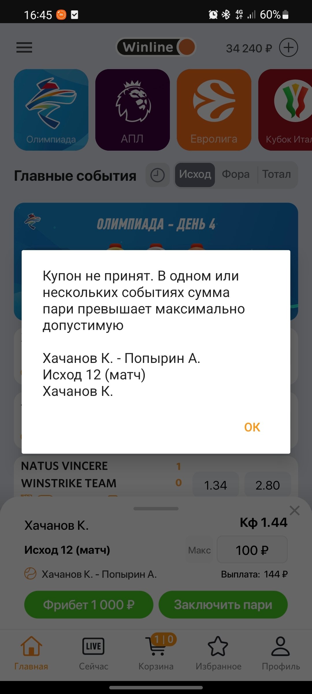 Доброго дня. Хотелось бы вам рассказать об очередном беспределе от винлайн. В начале января 2022 винлайн неожиданно ограничил мне ставки, объясняя это тем, что мне нужно пройти видеоверификацию, позвонили по видеосвязи, показал им паспорт, верификация прошла успешно. После верификации вернули мне доступ к ставкам, НО порезали максимум до 100 рублей и удалили мне все возможные выводы денег(по лимитам вопросов нет, имеют право), в том числе на карту(хотя пополнял я с карты, а по условиям вывести я могу только тем способом как и пополнял) Оставили единственную возможность вывода, на банковский счет, при условии того, что владельцем счета и владельцем карты буду являться я. Окей, указываю реквизиты своего счета, вывод зависает на 9 дней(по условиям БК вывод может выполнятся до 10 дней) Звоню в тех поддержку, спрашиваю, что там с выводом, говорят все хорошо, ожидайте, жду 9 дней, деньги возвращаются на балланс БК и приодит уведомление, что букмекер не одобрил вывод. Следом приходит сообщение от БК, что якобы для снятия ограничений по финансовым операциям от меня требуется фото карты с моей фамилией, либо фото договора с банком, на котором четко видо фамилию и номер карты с которой я совершал пополнения. Окей, запросил договор у банка, сфотографировал, отправил. Через день приходит сообщение, что теперь им надо мое селфи с договором и паспортом в руках. Окей, сделал селфи с договором и паспортом, отправил. Пришло сообщение что документы приняты в обработку, прошло уже несколько дней, результата никакого, в тех поддержке отвечают однообразным коллскриптом, ожидайте, бк в праве резать кфы отдельным игрокам и запрашивать документы. Вся эта история длится уже месяц. Помогите с решением проблемы.