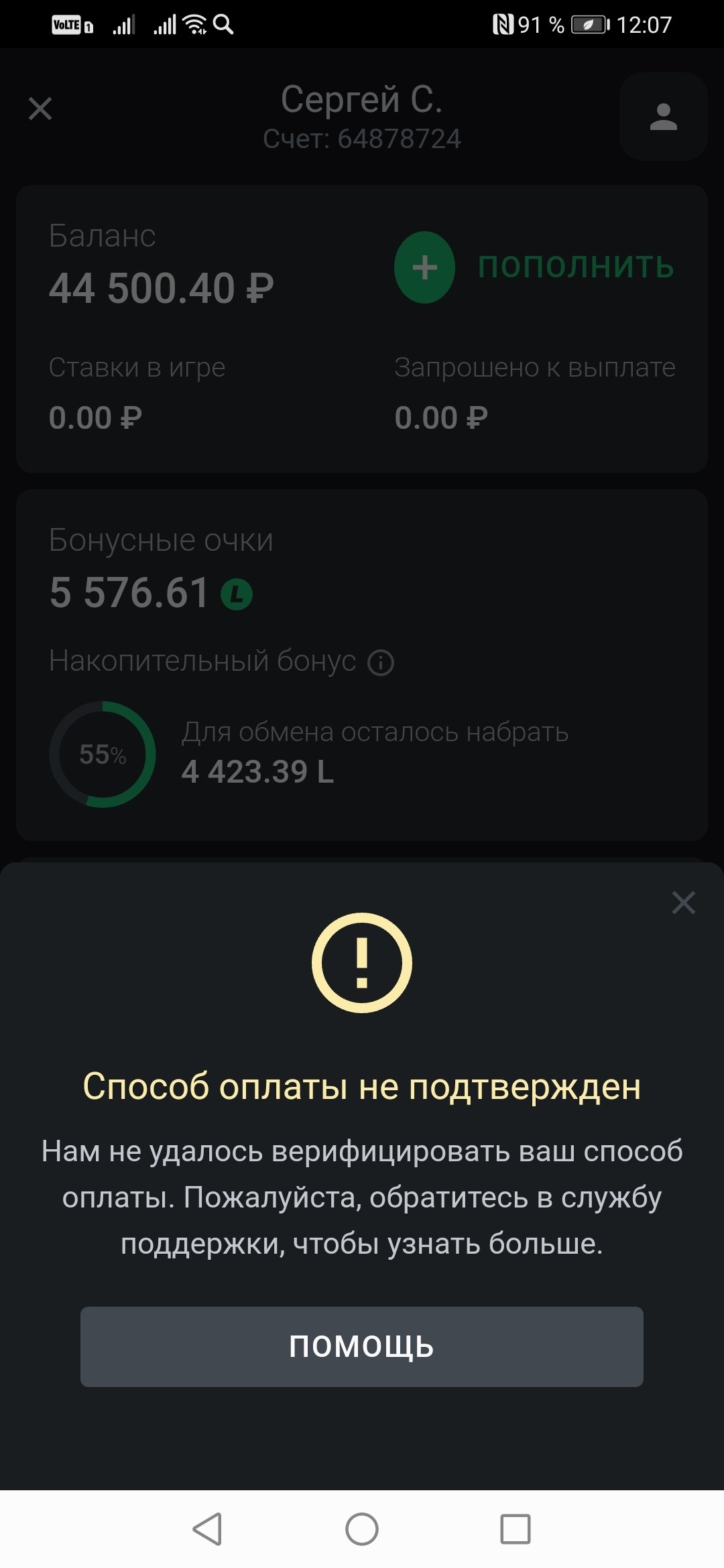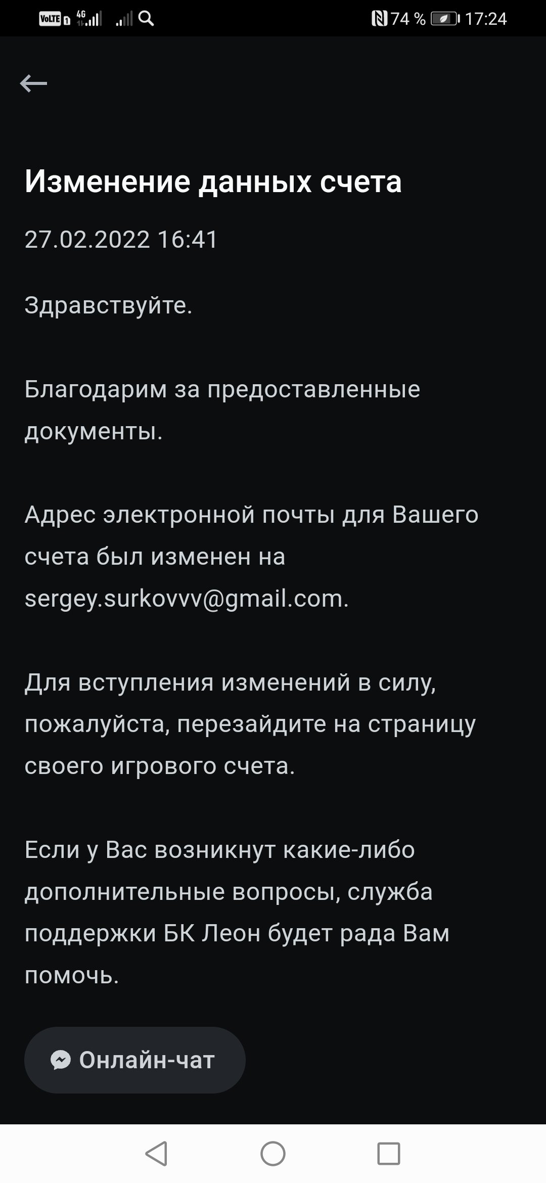 Здравствуйте! Мольба о помощи. Я уже не знаю куда обращаться. Я являюсь клиентом БК Леон с лета 2021 года. Прошёл регистрацию всё было хорошо, зачислял средства, выводил всё без проблем. Но я зачислил 10000 рублей на счёт (это всё есть в ЦУПИС1), и собрал экспресс из трёх событий и поставил на них. Экспресс прошёл и я выиграл 43тыс 700 рублей. Затем я решил вывести деньги, но пришёл отказ,я ещё раз сделал запрос пришло письмо что нужно подтвердить личность с документами. Я всё отправил, но опять написали что мне нужно подтвердить свою карту на которую будут перечисления, я отправил фото. Ни чего не изменилось. Теперь я им пишу на электронку и в помощь но бесполезно ни кто мне не отвечает. Я Вас прошу помогите, я уже не ради денег, а просто обидно, как значит зачислять проблем никаких, а выплата тысячу проблем.