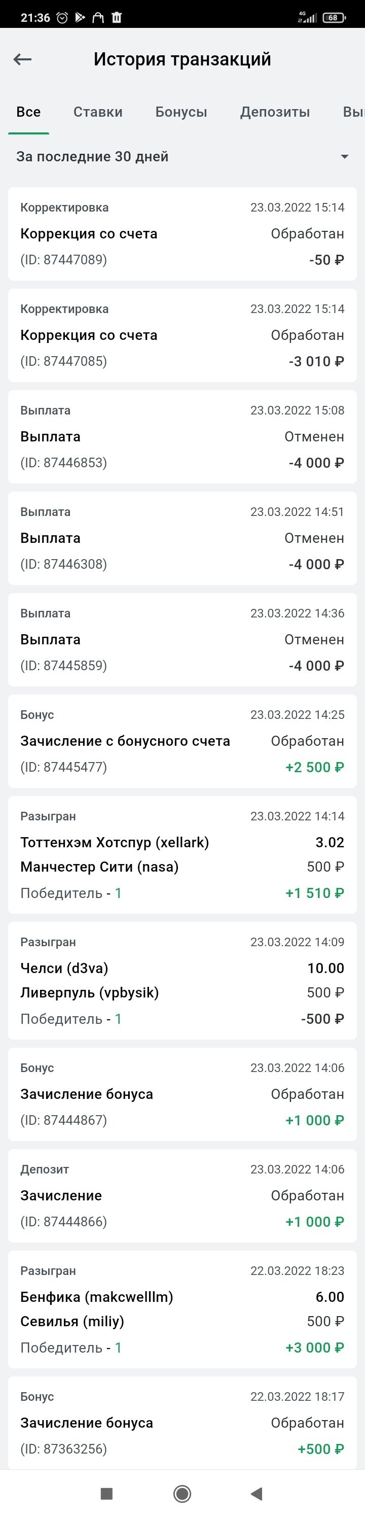 Вот список операций со счета , пока доступ был заблокирован счёт скорректировали