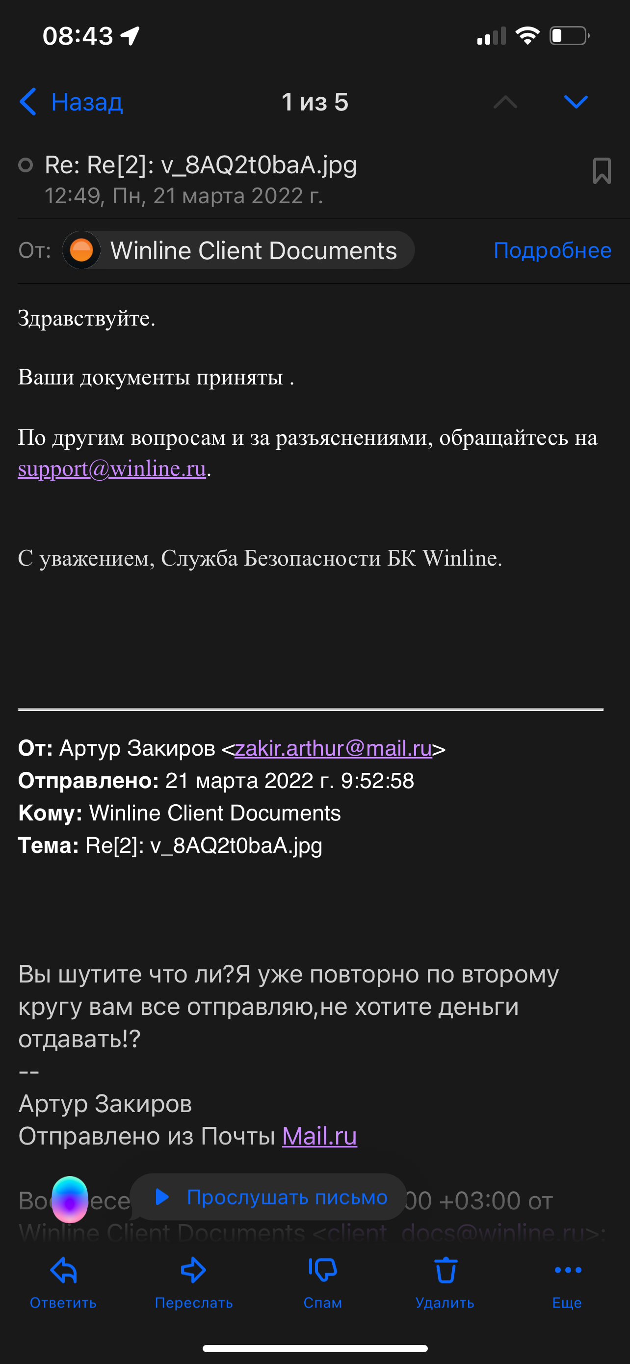 Букмекер запрошен по жалобе. На всякий случай укажите номер аккаунта или телефон.