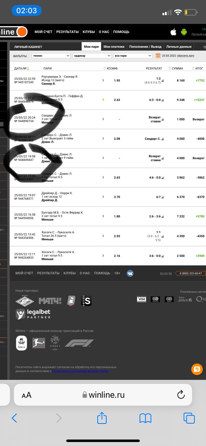 Добрый день, просьба разобраться в данный ситуации, читаю комментарии и вижу,что я здесь не один такой. Образовалась сумма -19000 рублей, букмекерская контора винлайн говорит,что все корректно и так далее. Прикладываю фото счета -19000 И плюс две ставки скрина. Хочу ещё написать,что они пишут не корректный был коэфицент,но даже на пари видно что ставилось при актуальном счете и так далее.