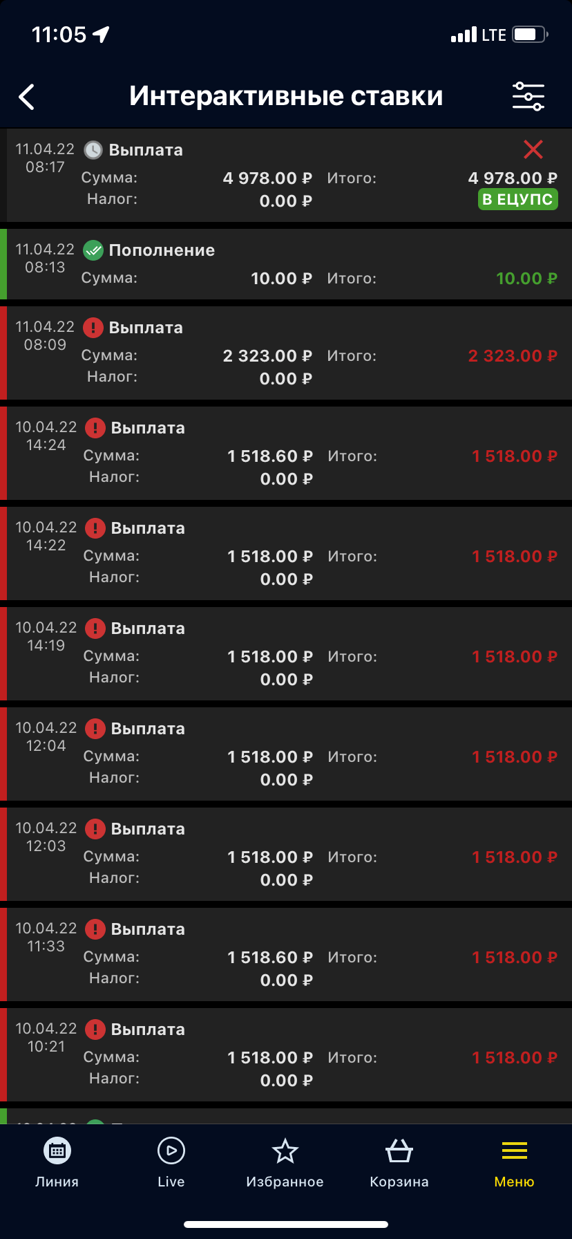 Заказывал выплату ещё пару дней назад, не выводили. Решил поставить и выиграл больше. Подал заявку заново. Поддержка игнорит.