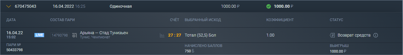 Здравствуйте, вчера делал ставки на гандбол. А именно на тотал в тайме и матче. Но по трем ставкам сделали возврат. По каким критериям они выбрали именно эти ставки и почему сделали возврат? Номера квитанций (670537302,670501903,670475043), а так же номера пари соответственно (73028242,19035655,50433798).