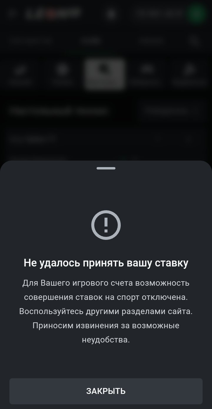 Спасибо за информацию, подождем. Просто подумал что опять какая то история началась. А тот факт что мне недоступны ставки и внесение депозитов- это счёт закрыли мне получается?