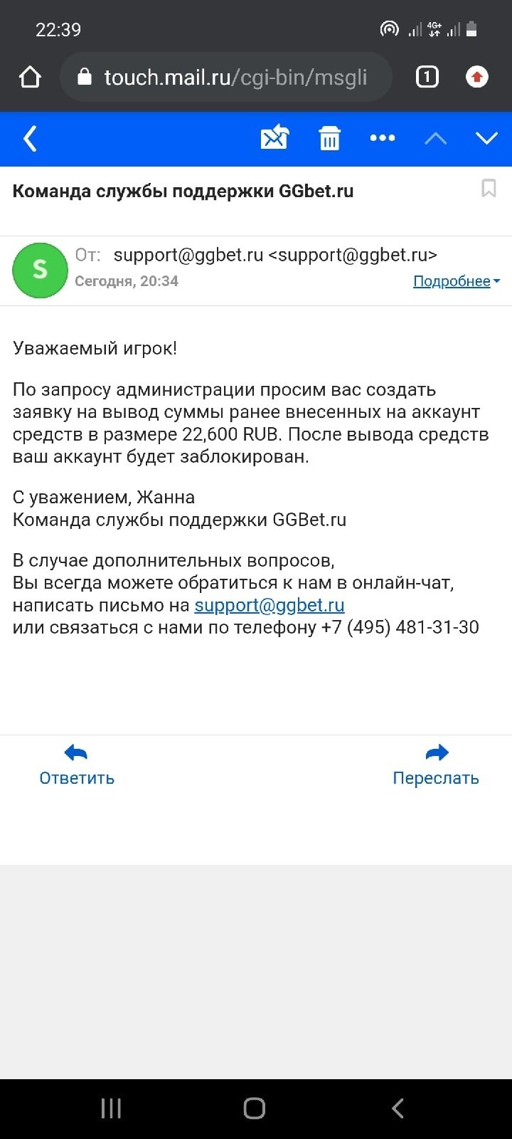 Вносила на БК 44800 рублей. Сделала пять ставок. на балансе более 60000 рублей. Прошла видео с расспросами. Поддержка отказали на отрез в выводе моих средств и заблокировали аккаунт. И по телефону и по электронной почте утверждают что возврат средств не возможен. Помогите разрешить ситуацию с .