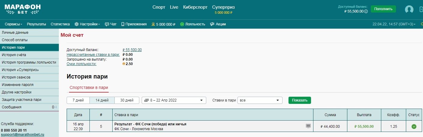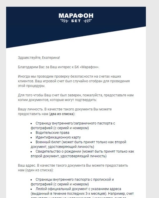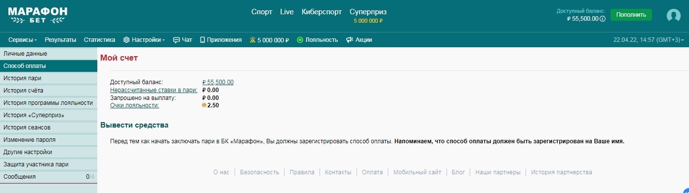 Пополнила счет в конторе на 44400 рублей, сделала ОДНУ ставку на коэффициент , ставка выиграла. После чего я не могу вывести средства. В разделе "Вывод средств" отсутствует какой-либо вариант платежной системы. Техподдержка написала, что мой счет случайным образом выбран для какой-то проверки, запросили документы. Предоставила им фото паспорта, свидетельство о рождении и прописку - всё как они и требовали. Недавно запросили селфи с листком и кодом и паспортом. И после этого пропали. Подозреваю, что мои деньги специально держат у себя в "обороте". Также, заметила, что лимиты ставок на все матчи снизили до 100-400 рублей. И это всё после ОДНОЙ ставки, серьезно?? Хотелось бы верить, что контора добросовестная, но пока что наблюдаем обратное.