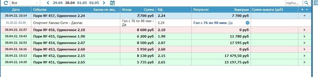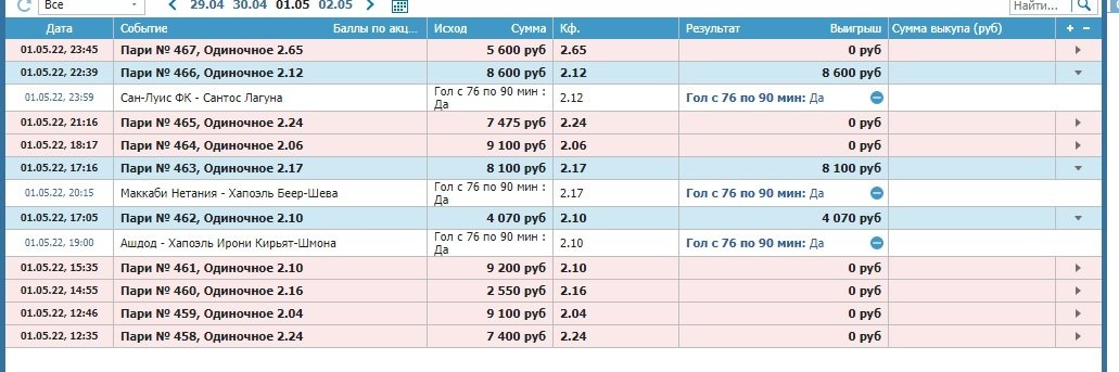 Выложите, пожалуйста, скрины ставок, которые возвратом рассчитали.