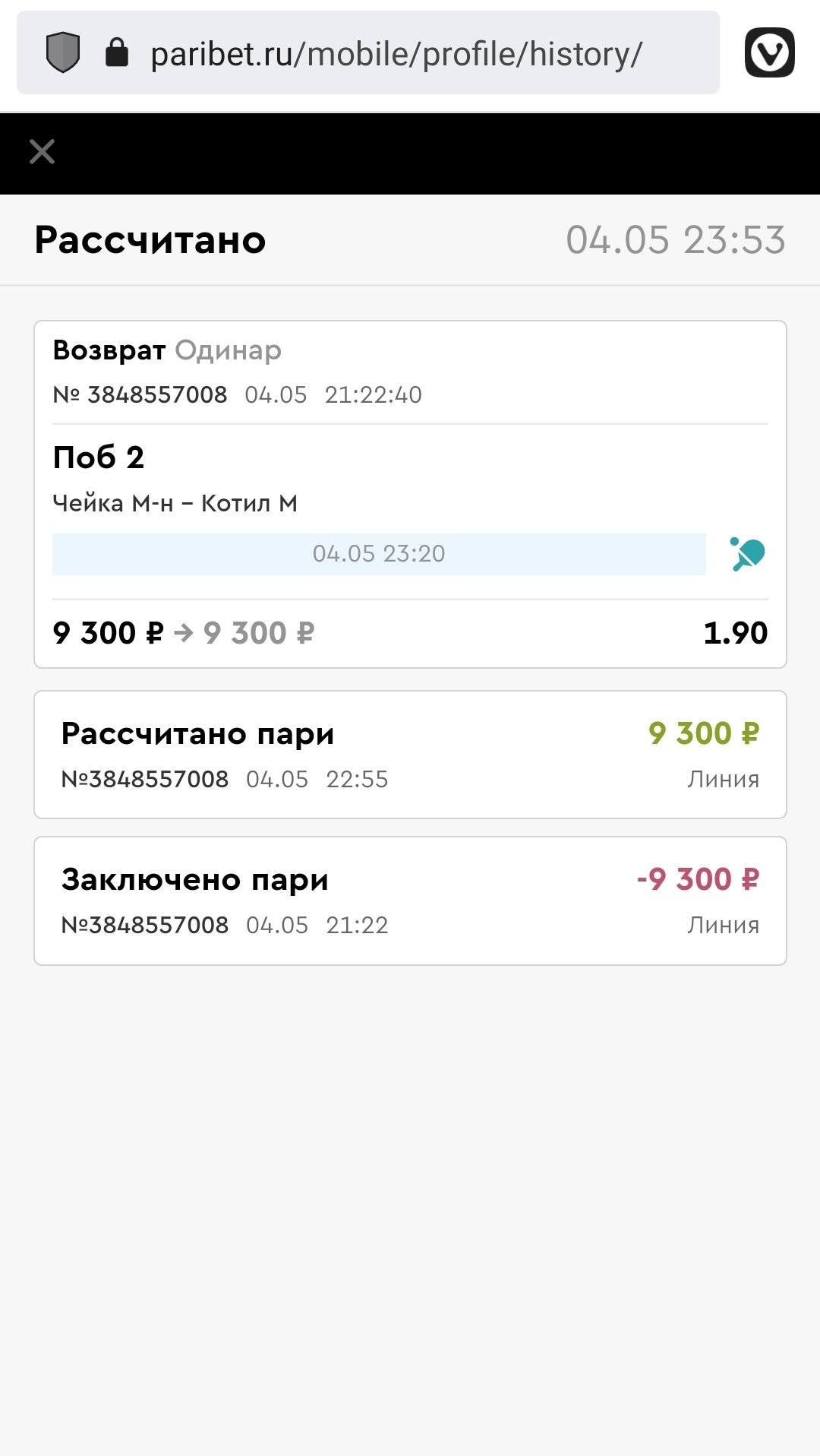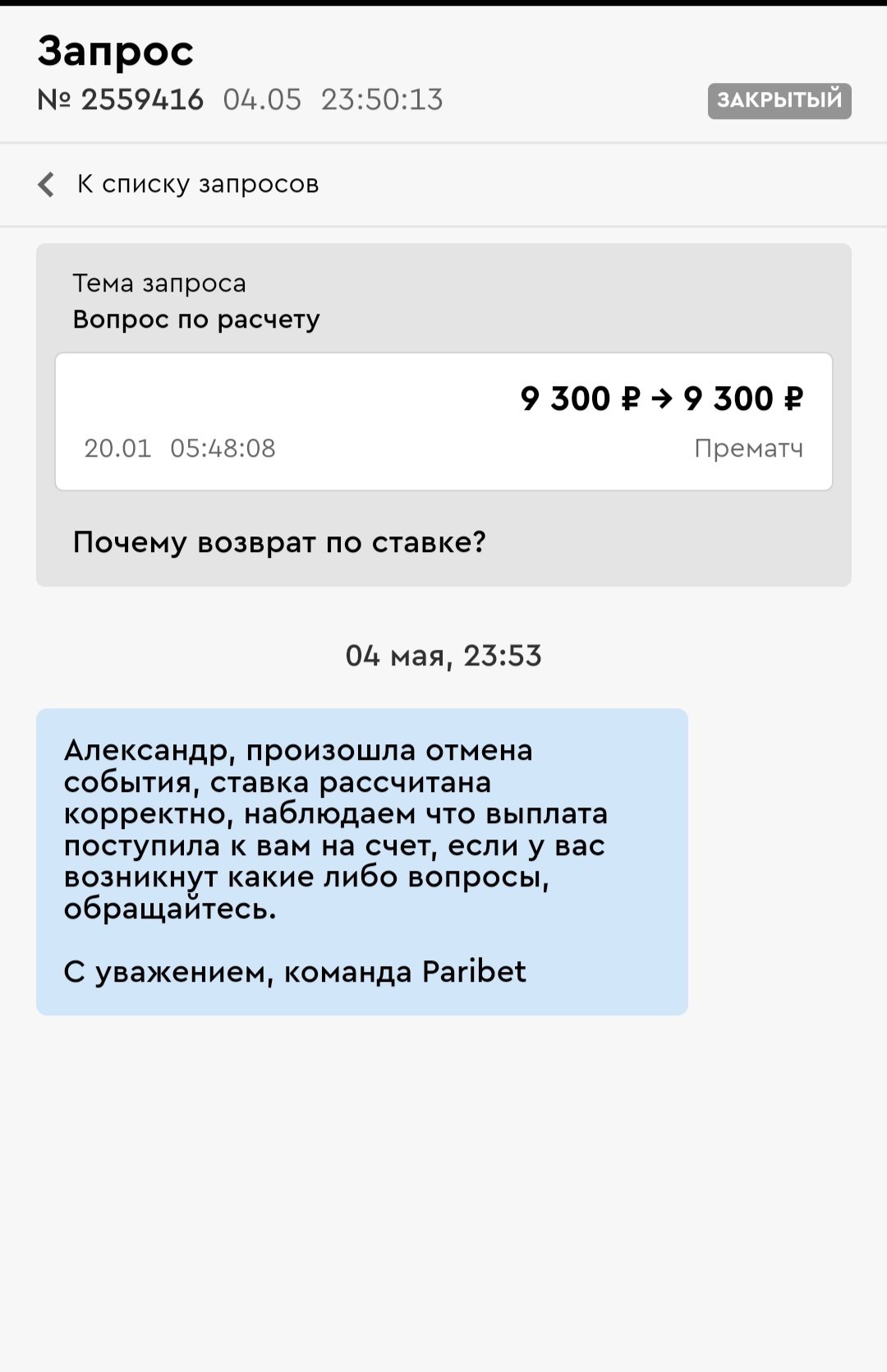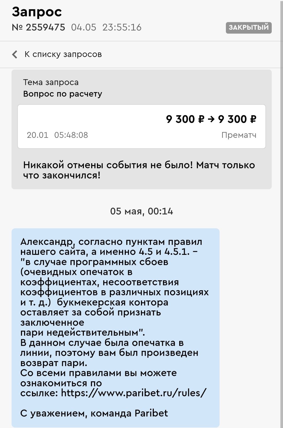 Здравствуйте, букмекер отменил ставку, которая выиграла. Сначала мне стали втирать, что событие было отменено, когда я им доказал что событие свершилось они придумали другую версию, якобы у них там какая-то ошибка была. Хочу отметить что кф был рыночный.