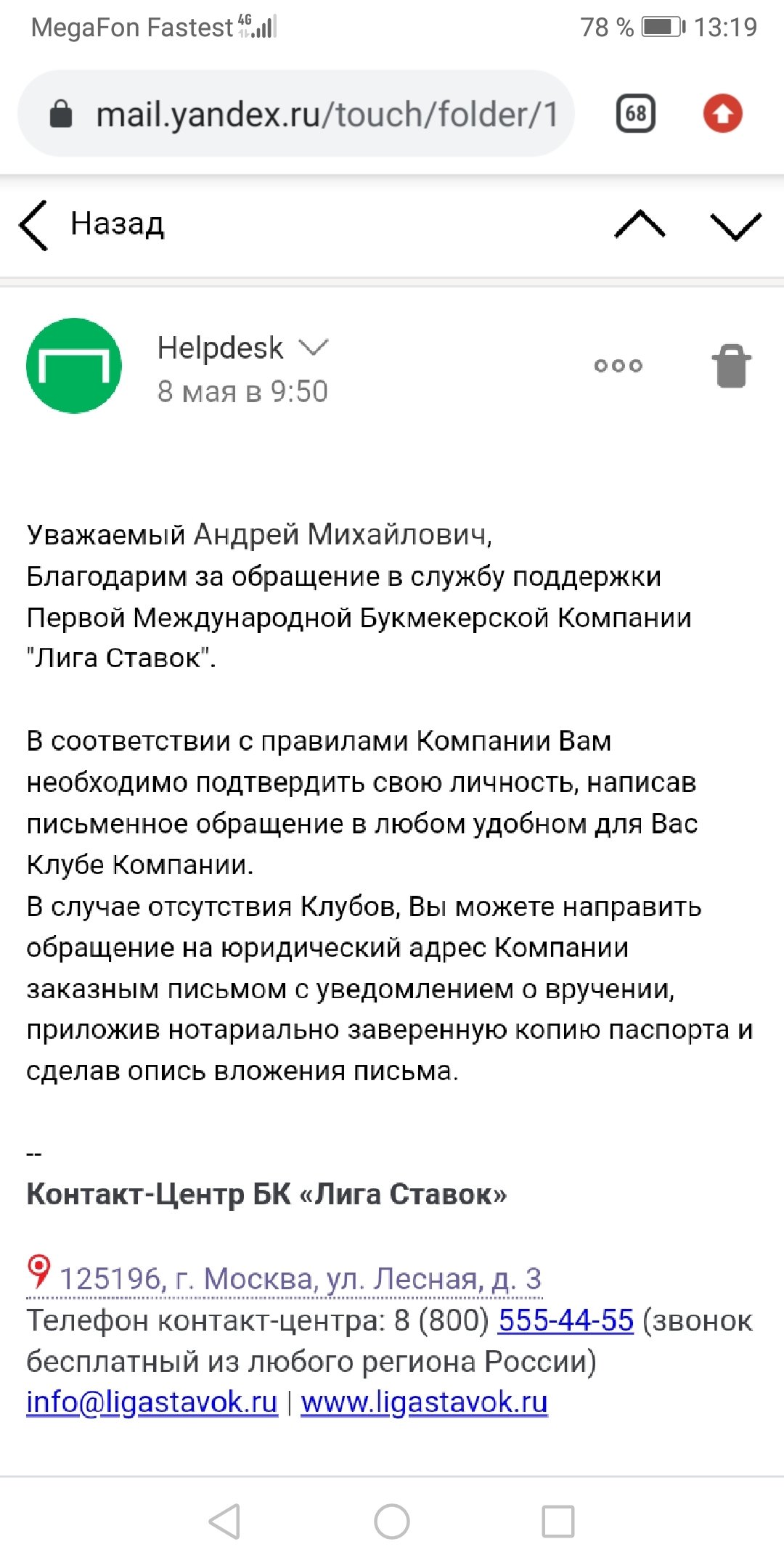 Вот что ответили спустя время на почте,но с чего я должен ещё отправлять свои документы, когда я уже подтверждал свою личность онлайн и мог пользоваться сервисом. Мне кажется уже идёт излишняя проверка, ибо я могу онлайн подтвердить.