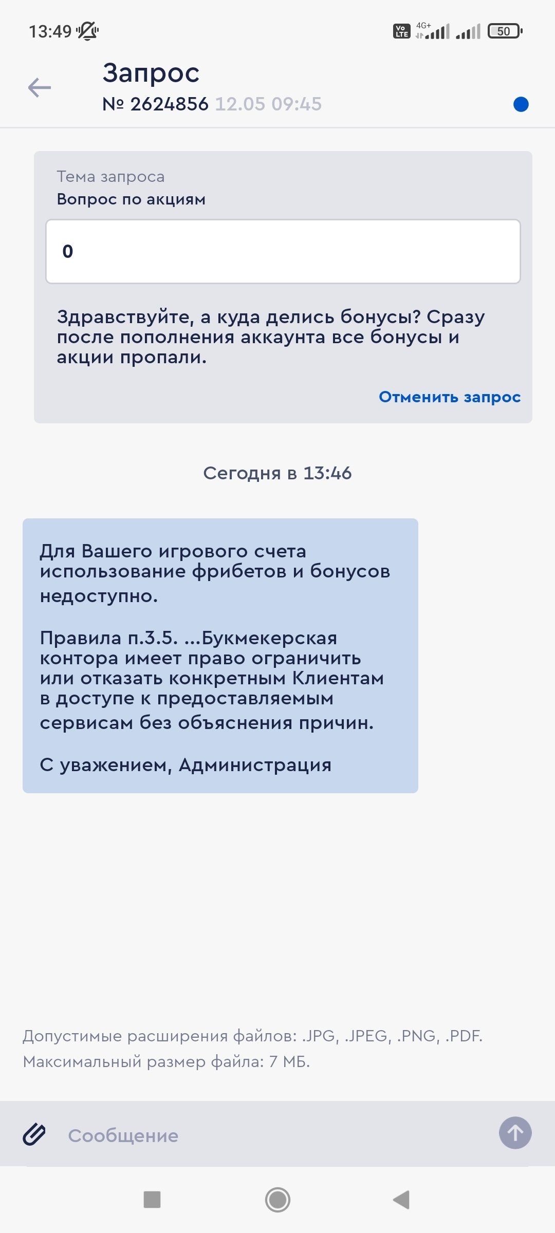 Информация по жалобе от букмекера не получена.