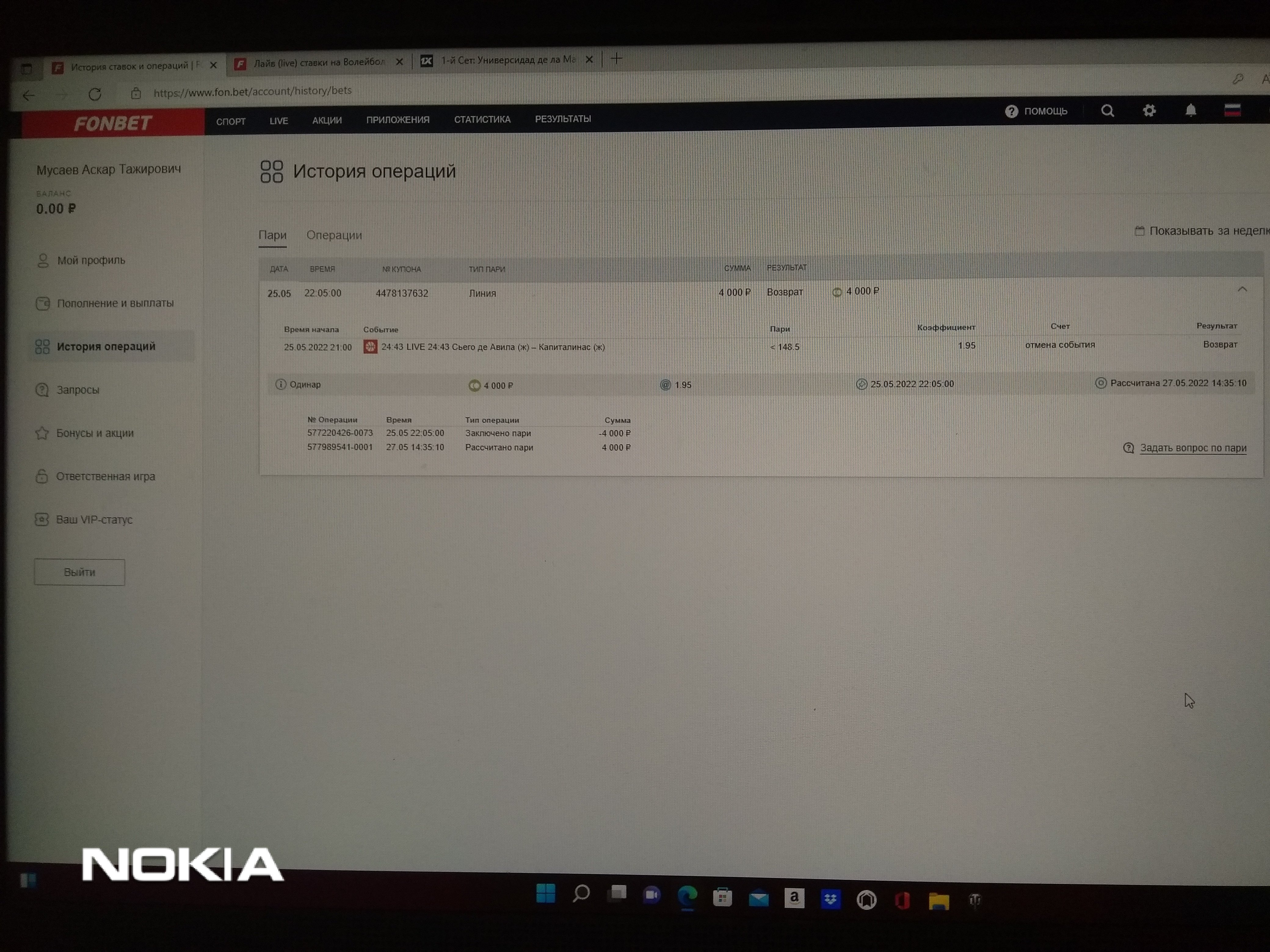 поставил в лайве на баскетбол куба 21:0024:43LIVE 24:43 Сьего де Авила (ж) – Капиталинас (ж)< отмена событияВозвратОдинар4 000 ₽ 22:05:00Рассчитана 14:35:10во всех конторах есть результат 54:85, а у них почему нет