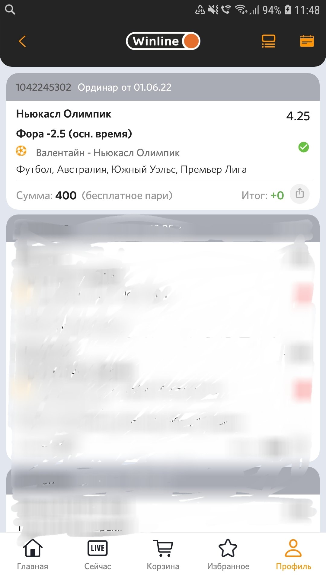 мне был начислен фрибет 400 рублей за предыдущий месяц. Я сделал ставку до начала матча по футболу. Матч был отменён, а в приложении Винлайн в истории пари,матч был зарегистрирован как выигрышный,с выигрышем 0 рублей. Отправил письмо на почту чтобы возобновили данный фрибет,по причине отмены матча,но никто не отвечает.