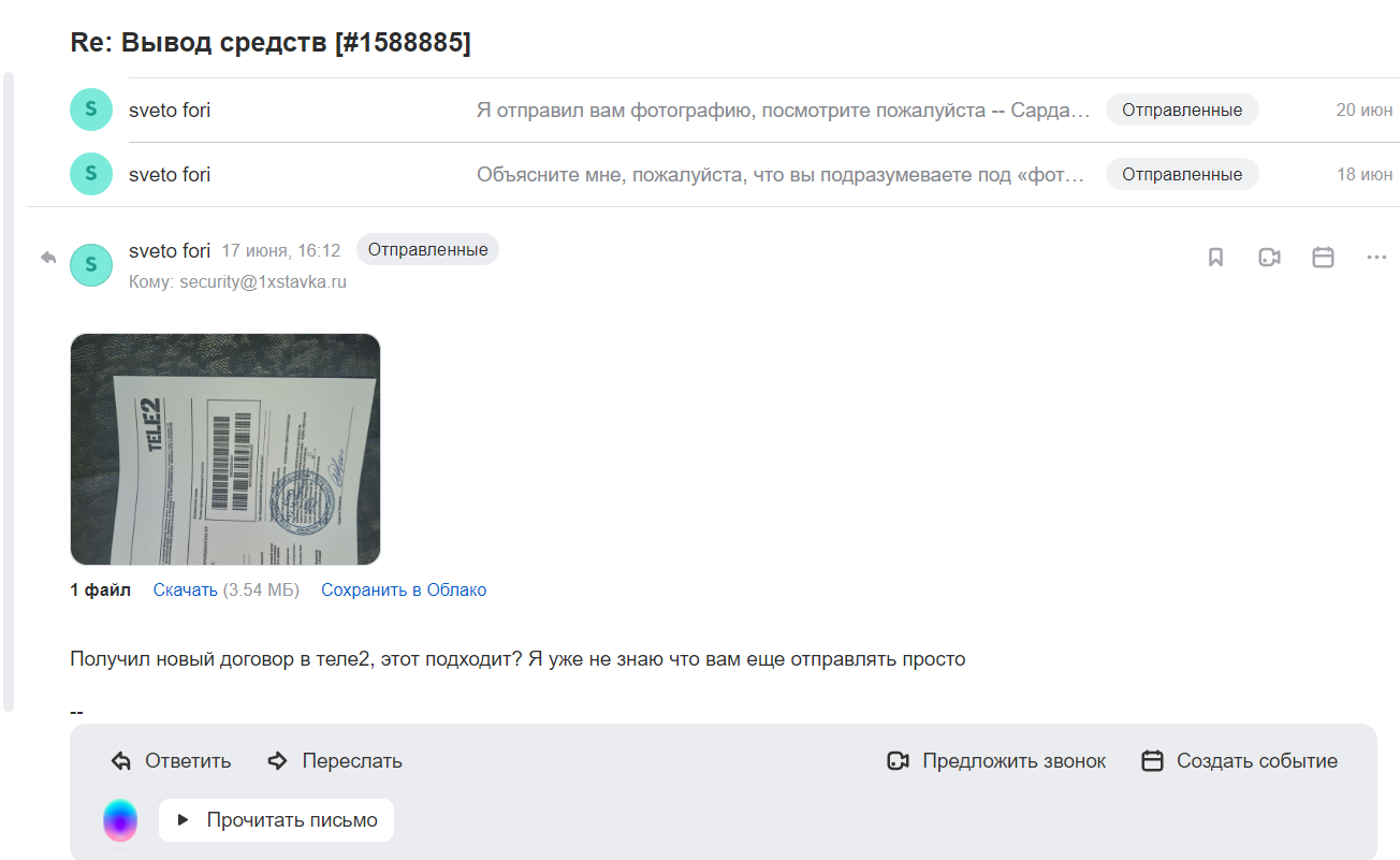 Здравствуйте. У букмекера 1хставка проверка моих документов длится с , не хотят отдавать выигрыш в размере 252000, для меня это очень большие и нужные деньги. За всё время было отправлено уже огроменное количество документов для проверки моей личности, а именно: 1. Паспорт 2. Скришоты киви карты 3. Фото договора 4. Скриншоты истории киви (все операции) 5. Выписка по киви кошельку в формате пдф 6. Детализация теле2 7. Фотографии с паспортом на фоне переписки с СБ 8. Квитанции ЖКХ 9. Скриншот оплаты квитанции ЖКХ Далее на каждый запрос приходило уведомление о том, что документ фальшивка и я отправлял либо новые, либо те же фотографии по 3-4-5 раз 10. Детализация в напечатанном виде из салона теле2 11. Селфи с договором теле2 на фоне комьютера, с которого делал ставки 12. ИНН 13. СНИЛС 14. СНИЛС на фоне листка бумаги с текущей датой 15. Фото 19 страницы паспорта 16. Скриншот с портала госуслуг 17. Снова фото квитанций ЖКХ 18. Детализация теле2 на почту Тут началась просто жесть 19. Селфи с договором теле2 20. Договор на переоформление симкарты, но я ее не переоформлял, да и такого документа у теле2 не существует, я узнавал специально, но 1хставку это не волнует, она ждет несуществующий документ 21. Снова селфи с договором теле2, который не приняли 4 раза, потому что договор со слов поддержки "не является подлинным" Теперь заново просят договор который им отправлял в итоге его не хотя принимать под предлогом что это подделка, я сходил получил новый, его тоже не принимают, игнорируют, хотя я предлагаю заверить его нотариально и выслать если потребуется, на что я не получил ответа. Помогите, пожалуйста, у меня уже нет сил с ними бороться, неужели в нашей стране все хотят отжать чужие деньги и не работать честно? P.S Дополнительно я обратился помимо службы безопасности в службу поддержки, но там меня ни во что не ставят и так же игнорируют... Сложилось чёткое понимание, что деньги мне возвращать не планируют... Обязательно расскажу всем, какая классная БК 1хставка...