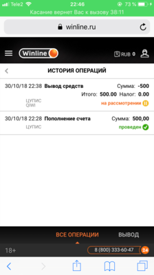 Пришла смска на телефон . Тип дают фрибет если пополнить winline на любую сумму в размере 500 рублей. Я пополнил этот БК на сумму 500 рублей , мне дали фрибет . Я его отыграл , выиграл 1250 . Решил запросить деньги на вывод 1250 которые получил от фрибета и 500 которые закинул сам . В итоге мне ничего не вывели . Только прислали какое то не понятное письмо на почту !!! Прошу принять моё сообщение и вывести деньги . Вроде хорошее БК , но с такими приколами оценка с 1-5 , максимум 2 .