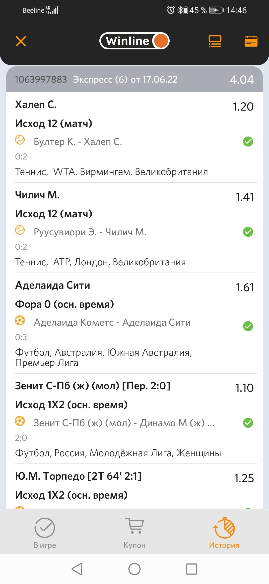 Добрый день! г. Проставил экспресс с 6-ти событиями, все благополучно прошли. Но денежные средства (выйгрыша) списали.