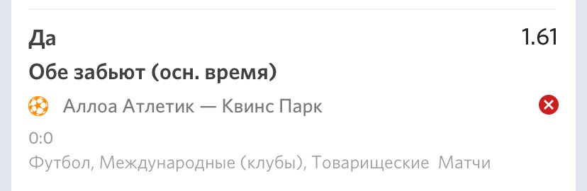 Написал в поддержку по поводу матча Аллоа Атлетик- Квинс Парк, их ответ:(Матч по решению судьи был признан состоявшимся ,счет 0-0, ставки рассчитаны согласно актуальным кф. Закончен матч раньше времени вероятнее всего из-за травмы одного из игроков)(Если главный судья решил, что матч завершён, значит матч завершен.)