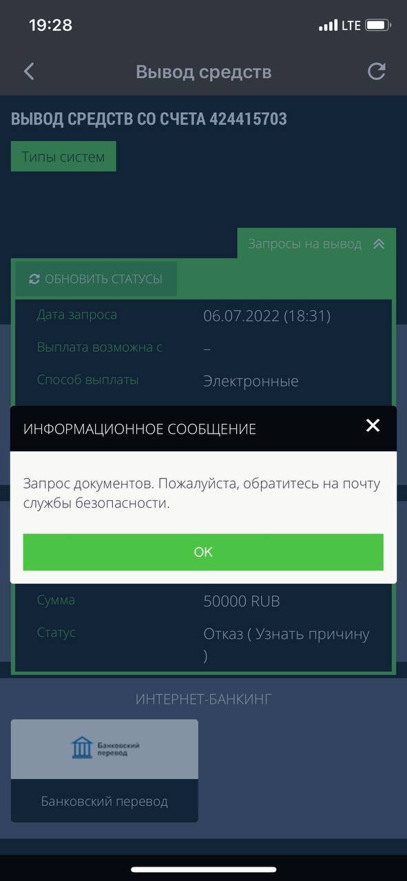 Добрый вечер Совершал ставки в данной БК,сегодня после серии удачных ставок и запроса вывода денежных средств данный букмекер запросил документы для верификации В ввиду многочисленных отрицательных отзывов,решил себя обезопасить от длительных проверок и якобы "слива" счета с "моей" стороны Прошу прорегулировать мою верификацию,чтобы все происходило честно и в адекватно До конца завершения верификации ставки делать в данной конторе отказываюсь. Спасибо