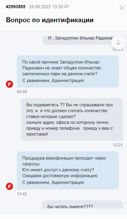 Здравствуйте администрация легалбет, прошу помощи разобраться с ситуацией с конторой фонбет. пополнил счет на 450 000 руб, по карте сбербанк, сделал ставку на настольный теннис на сумму 423 700 рублей номер купона (5370056666)- это был максимум на данную ставку, потом по ходу события решил продать ставку, за 451 640 рублей. после этого началось , контора закрыла выплаты и порезала максимальные ставки ,написал в поддержку , те в свою очередь попросили сделать следующее ( 1. Фотографию Вашего паспорта; 2. Фотографию с паспортом в руках и листком бумаги с сегодняшней датой; 3. Фотографию паспорта на фоне данной переписки. Монитор в кадре должно быть видно полностью. Окно браузера просьба открыть на весь экран, обязательно должна быть видна панель задач (кнопка "Пуск" и часы). Курсор расположите на тексте "С уважением, Администрация», курсор должен измениться на выделитель. Паспорт просьба расположить рядом с экраном монитора без перекрытия экрана. 4. Фотографию Вашего паспорта на просвет (той страницы, которая с фото). Спасибо. С уважением, Администрация ) я все прислал , потом попросили прислать ( Вышлите, пожалуйста, фото банковской карты 220220XXXXXX4486 и 535082XXXXXX3892 с разворотом паспорта. Лицевая сторона карты должна частично перекрывать паспортные данные. Первые 6 и последние 4 цифры номера карты должны быть видны – остальные можете закрыть листком бумаги. Также, просьба выслать фото с данной картой в руках (на фотографии Ваше лицо с картой). С уважением, Администрация) опять прислал , затем опять спрашивают (Вышлите, пожалуйста, фотографию паспорта, сделанную на фоне монитора с нашей перепиской с последним сообщением. Браузер разверните на весь экран, но при этом обязательно должна быть видна панель задач (кнопка "пуск" и часы). Паспорт должен быть расположен рядом с экраном монитора (не перекрывайте экран). Пришлите фотографию в течение 20 минут с момента прочтения данного сообщения. Курсор расположите на тексте "С уважением, Администрация" (курсор должен измениться на выделитель). С уважением, Администрация) снова все отправляю , затем назначают видео верификацию , согласовали время и позвонили в вайбер. ответил на все вопросы ,но ничего не поменялось , и начали запрашивать еще фото следующего характера (Сделайте, пожалуйста, фото с паспортом и листком бумаги с сегодняшней датой в руках. Пришлите фото в течение 10 минут с момента прочтения данного сообщения. С уважением, Администрация) все фотографирую быстро чтобы успеть за 10 минут и отправляю .затем спрашивают кто использовал счет для заключения пари и говорят что я не знаю общее количество ставок которые заключил на данном счете.( полный бред, кто считает сколько ставок он сделал?) Контора не добросовестная , запрашивают абсурдные фото по несколько раз,не хотят выплачивать деньги, таким конторам не нужно давать лицензию вообще . Прошу помощи в разблокировке счета и поисках хороших юристов, сумма не маленькая !