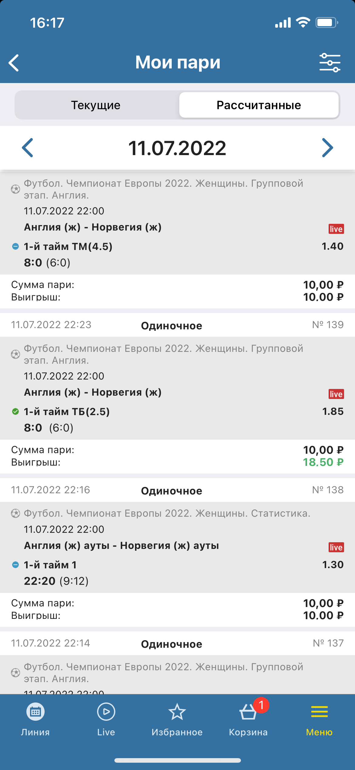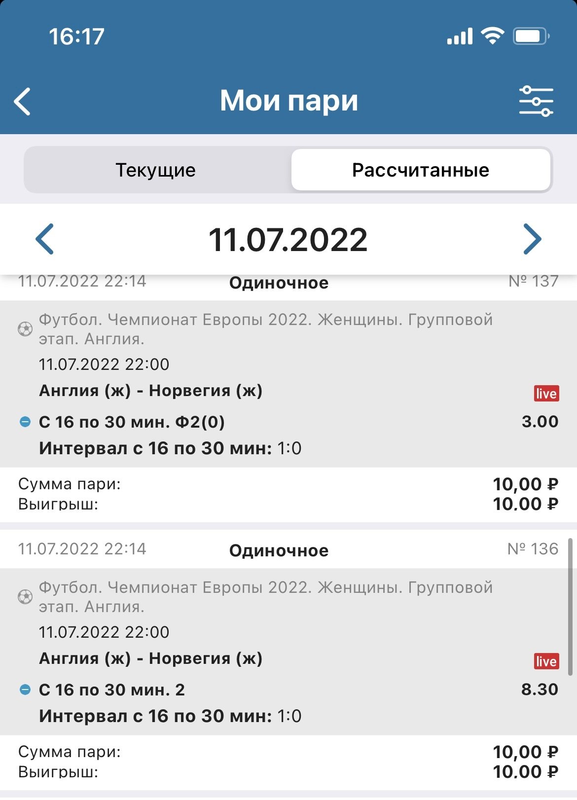 По информации от букмекера, осуществлен возврат ставок сделанных на уже свершившиеся события. Действия БК в рамках правил.