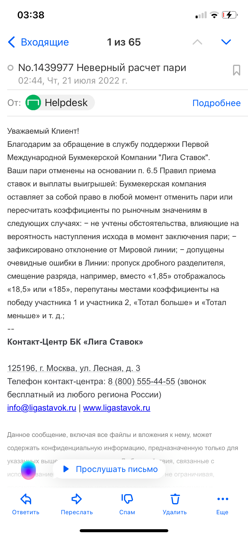 Всем здравствуйте! В последнее время стал замечать что букмекерская контора Лига ставок стала сильно занижать коэффициенты, помимо этого появились задержки в 25-30 секунд реального времени, что не дает сделать выигрышную ставку (при нажатии на 0,5б поставить не дает, примерно по 20 секунд грузит ставку, потом пишет: «прием пари временно приостановлено», после чего вижу как гол забивается спустя 20 потерянных секунд. Было неоднократно. Но самое обидное, что происходит - возврат выигрышных пари…(с проигранными пари такого никогда не бывало!) Тут 3 фото, из 5. Больше по крепить не дает.