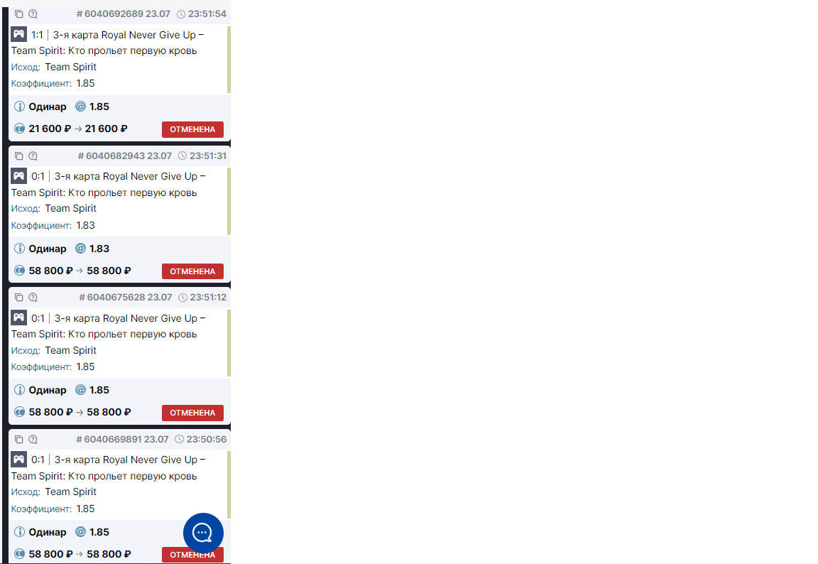 Ставки сделаны на уже свершившееся событие. Возврат ставок в рамках правил.