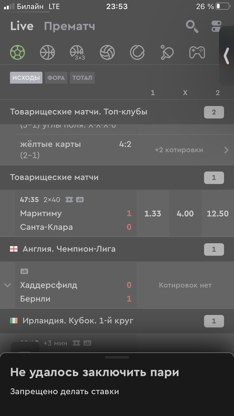 Добрый день, такая проблема смотрел Dom2 вел промоо, промокод активировался, хочу поставить ставки пишет запрещено делать ставки, что за развод? для чего дают промокоды а по факту ставить не дают? считаю что это не акции а развод, номер счета 20701157