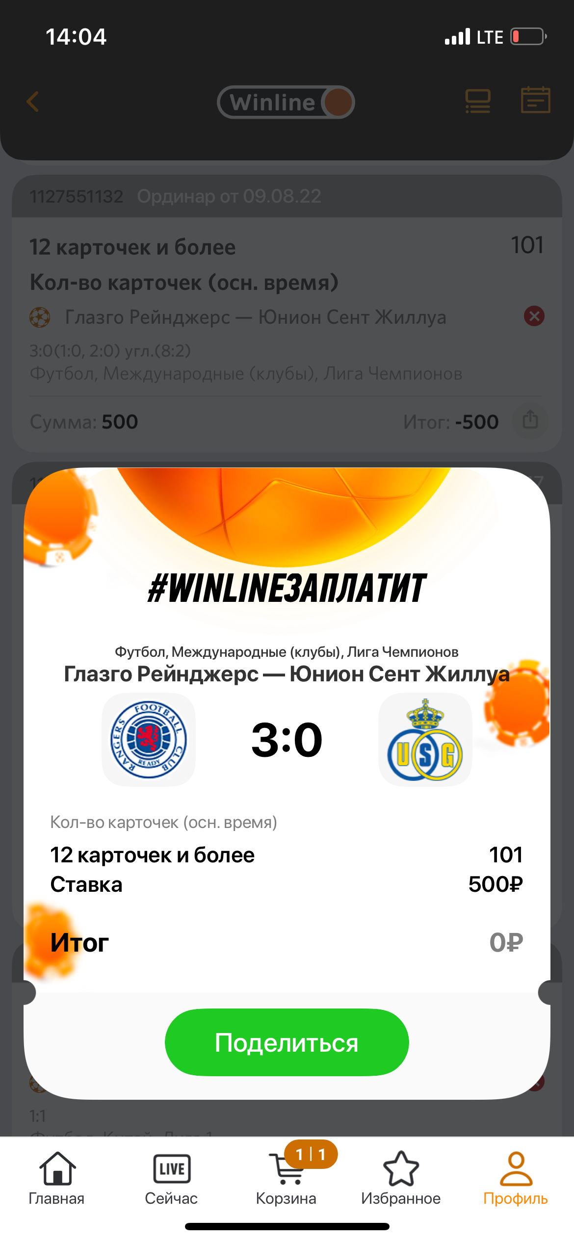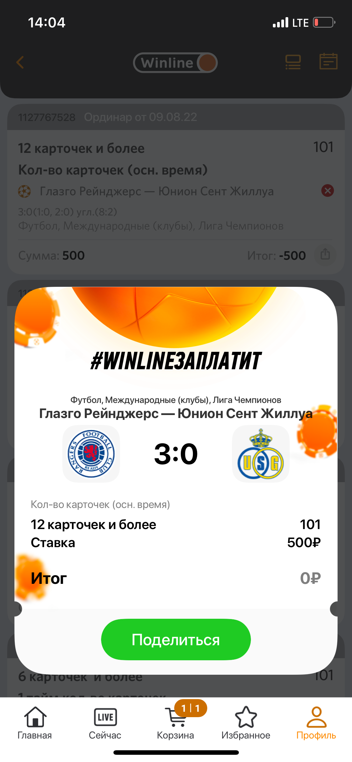 Добрый день, поставил две ставки по 500 рублей на матч Глазго Рейнджерс - Юнион Сент-Жиллуа, взял 12 и более карточек за матч с коэффициентом 101, по информации официального сайта УЕФА, flashscore и whoscored (менее популярные сайты не беру, но там та же информация), в матче было показано 12 желтых и 1 красная карточка. Одна из желтых показана главному тренеру и в расчёт, конечно, не идёт. Ставка должна быть рассчитана как выигравшая, т.к. команды получили суммарно 12 карточек. Однако winline ссылается на то, что везде информация неправильная, что УЕФА и компания ошибаются, у них аналитический отдел свой, они насчитали 10 желтых и 1 красную. Ну бред сумасшедшего, очень прошу разобраться.