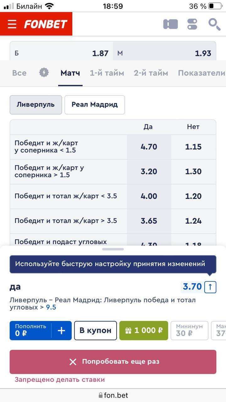27 мая начислили фрибет за участие в акции. Поставить я его так и не смог по причине "Запрещено делать ставки". Истёк срок фрибета(не по своей воле поставить не смог). Возвращать не хотят.