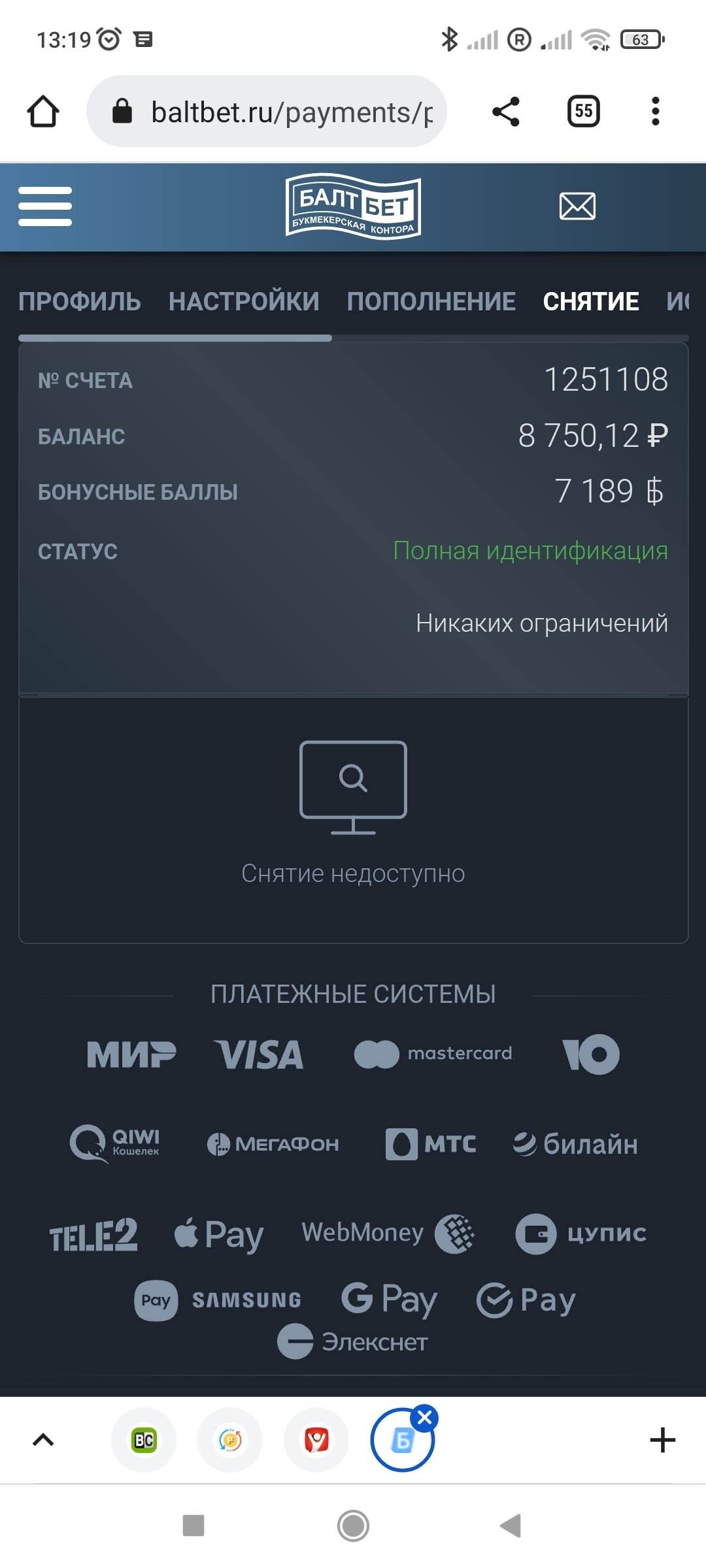 Вывод средств доступен.
