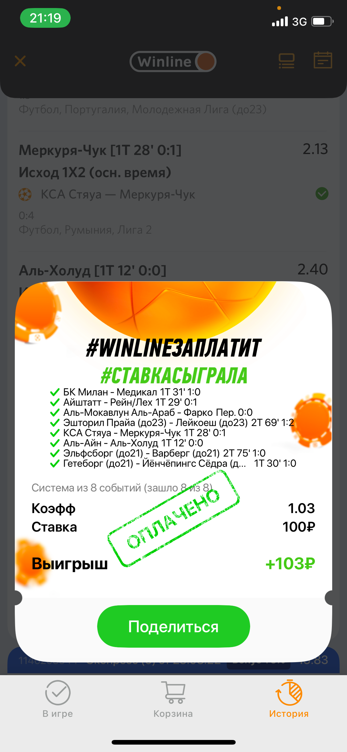 Сделал экспресс через систему 6 из 8 что зайдут, поставил 100р, ожидаемый выигрыш показывало 2800 с мелочью, 2 не прошли, 6 матчей прошли как надо, выплату сделал 103 рубля а не 2800!! Обманули так обманули