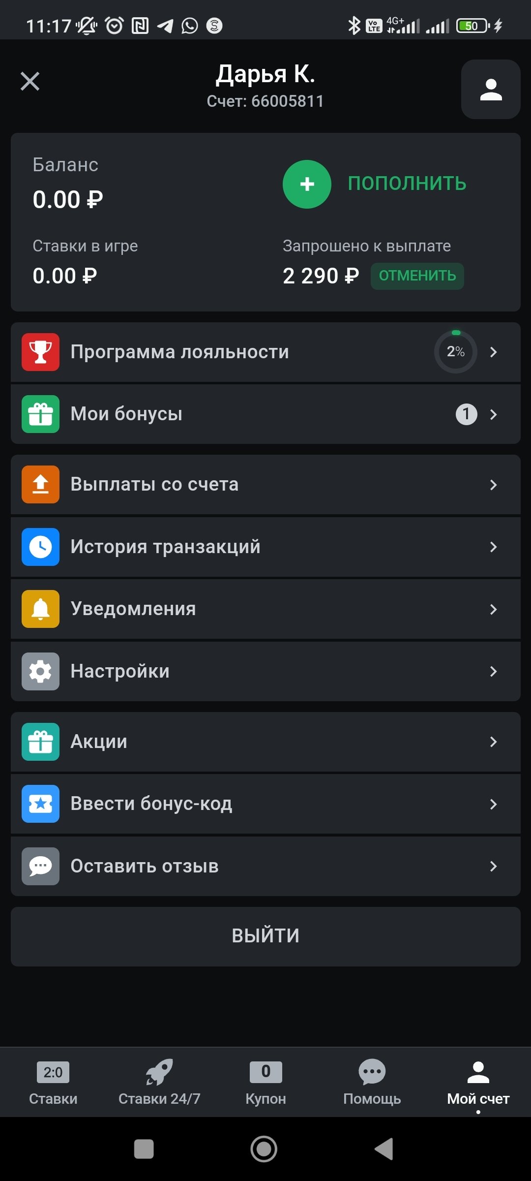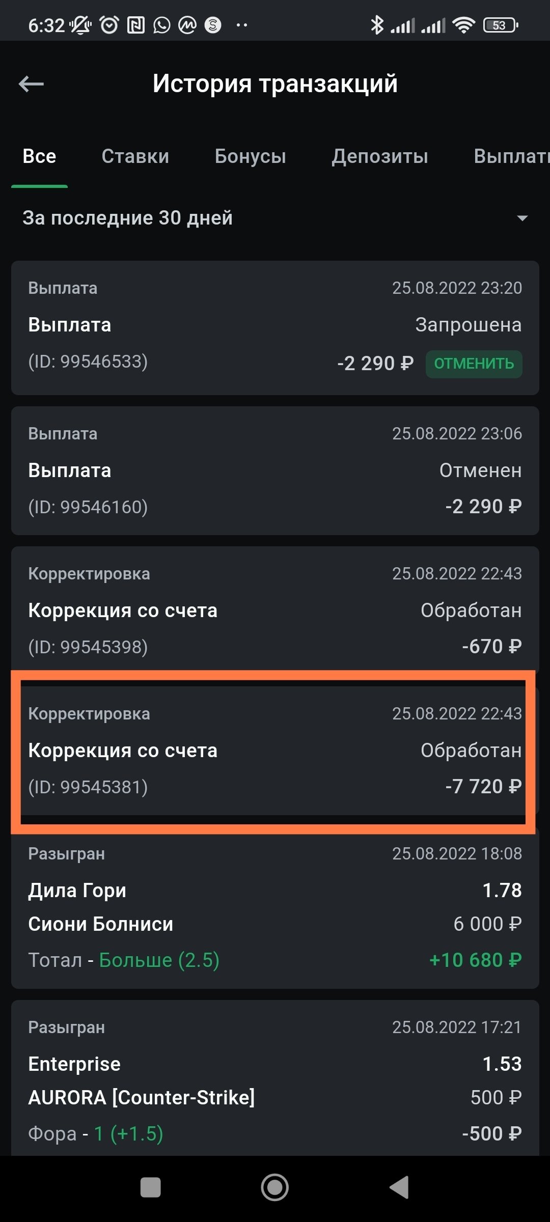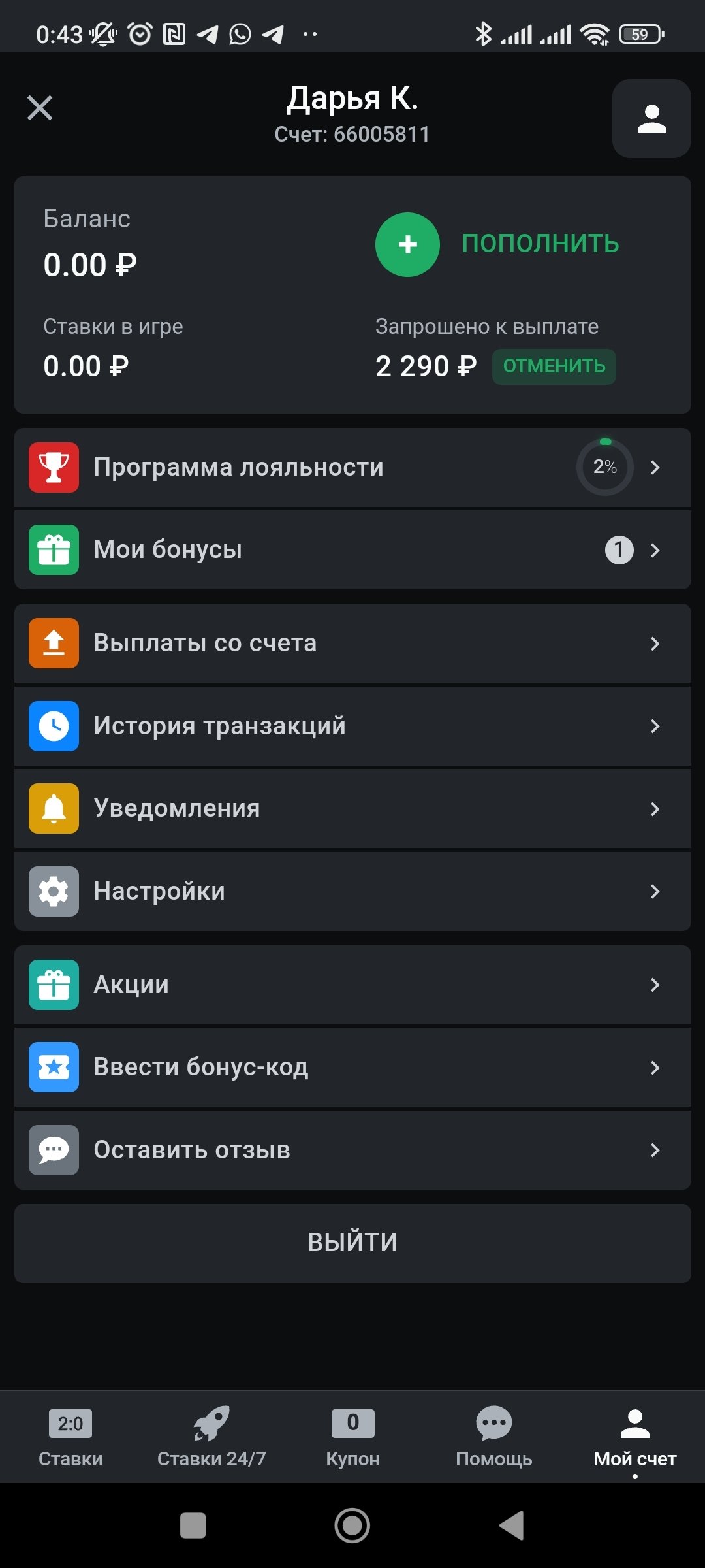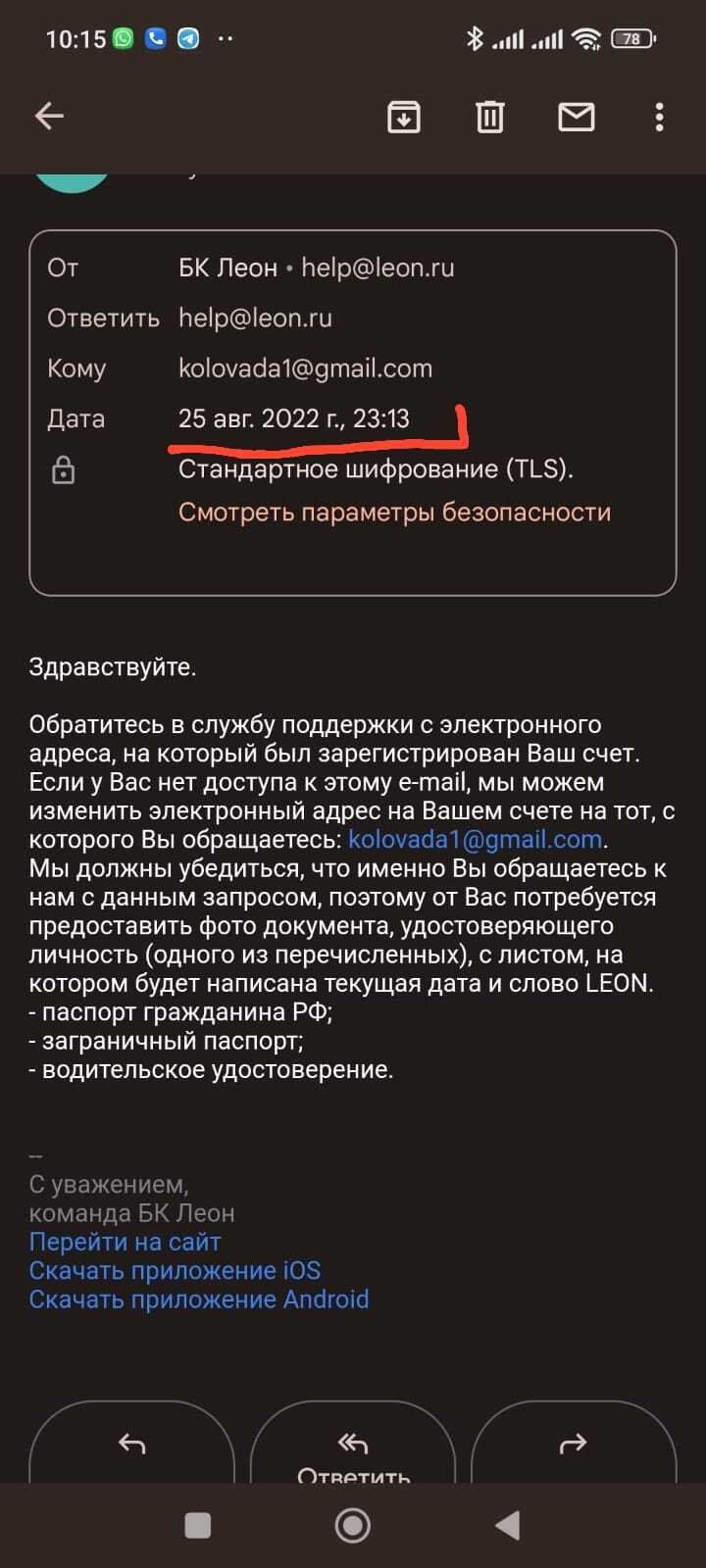 Здравствуйте, завела на счёт 66005811 сумму в размерн 6000 тысяч рублей, решила испытать удачу, до этого все было хорошо, аккаунт верификацию прошёл, уже один раз вывела выйгрыш, остальные разы проиграла а вот сегодня когда ставка сыграла и с 6000 тысяч, я выйграла 10680, обрадовалась, но когда захотела вывести средства со счета, у меня запросили заново пройти идентификацию, мне показалось странным так как уже отправляла им снимок паспорта и селфи, ну на первый взгляд подумала, может глюк, все сделала, как просили чёткое фото со всеми данными, после жду одобрения, в итоге приходит сообщение об ошибке и с просьбой обратиться в поддержку БК Леон.По ошибке написала со своей другой почты, объяснила ситуацию и прикрепила селфи с паспортом, номером счета и датой.в итоге отвечают что напишите с другой той которая прикреплена к вашей учётной записи, но в этот момент захожу на свою учётную запись на БК и вижу что мой выйгрыш 10680 рублей,превратился в 2290 рублей и приходит уведомление на почту о блокировке аккаунта и что вам будет возращен остаток средств со счета не превышающий сумму всех депозитов с вычетом комиссии 5% согласно .5 правил бк Леон. Первый вопрос как получается от 6000 рублей с вычетом 5% сумма равная 2290 рублей? Второй момент и самый главный ,я им отписалась сразу с той почты(привязанная к моей учётной записи на БК Леон) как увидела сообщение на другой почты с которой по ошибке написала им, ввела с ними разговор, сообщила что по ошибке написала с другой, на вопрос почему от 6000 тысяч рублей мне возращается только 2290 рублей они мне не отвечают а по поводу блокировки счёта они приняли окончательное решение которое не подлежит рассмотрению.Пожалуйста помогите разобраться, я ничего не нарушала и миллион у них не выйграла чтобы поступить так из за выйграша в сумме не привышающую 5 тысяч рублей.