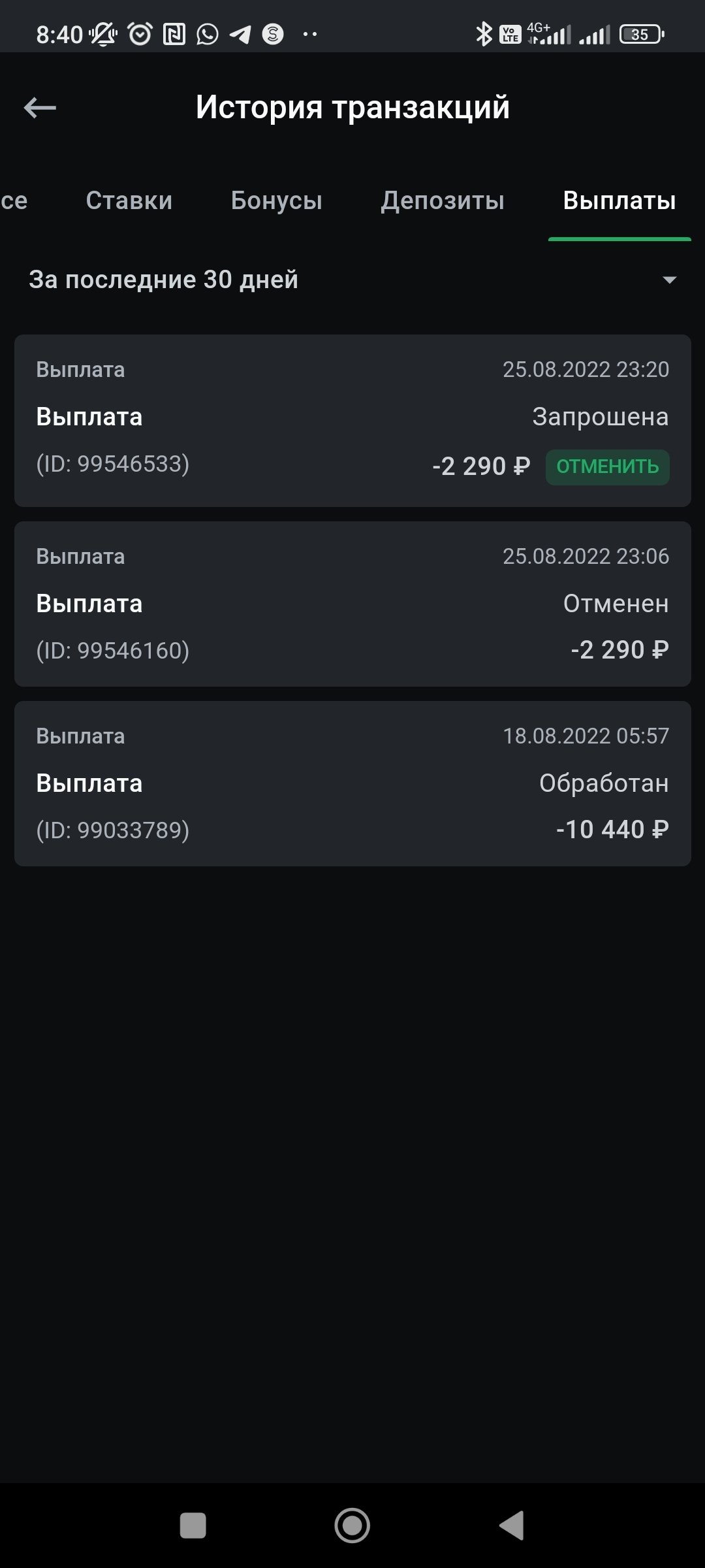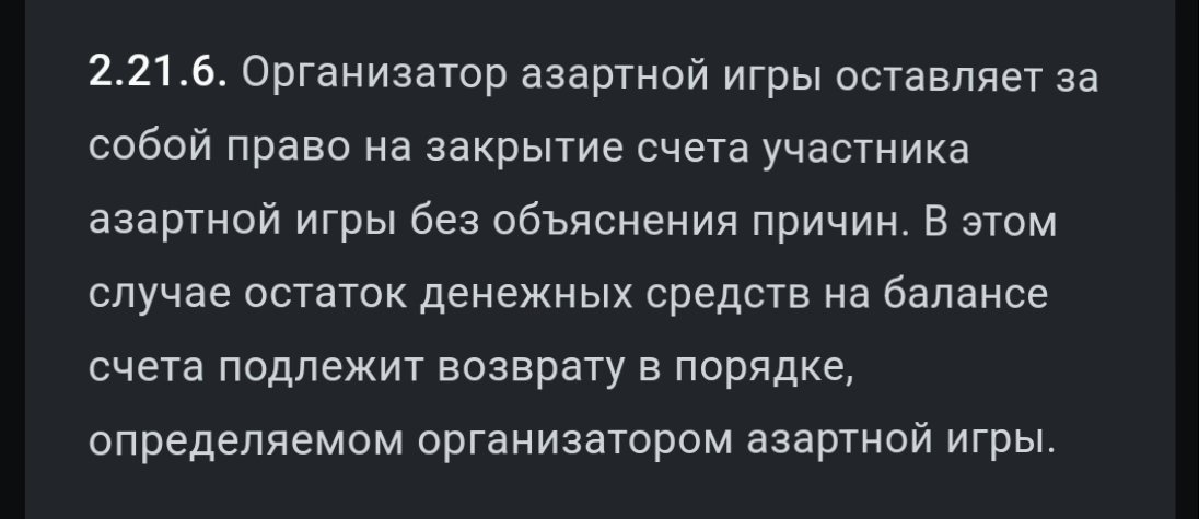 С утра мне приходит ответ по поводу возращения средств не привышающую сумму всех депозитов с вычетом комиссии 5 % , Я не пойму как они считают так как я вводила 4 депозита на сумму 13400 ,5% от него 670 рублей, а списали с моего выйграша 8390 рублей, аргументируя новыми на их взгляд фактами, с учётом не "только" вычетом 5% и вычетом совершенных вами выплат, значит по их мнению первый мой первый выйгрыш который я честно поставила на ординар с кф 1.80 я должна им вернуть?( При этом всем они мне дали спокойно вывести)На мой взгляд они просто не хотят выплатить мой выйгрыш, Легалбет помогите пожалуйста разобраться с такой смешной суммой выйграша по сравнению с другими историями более серьезными суммами которые были решены благодаря вам. Я готова предоставить все надлежащие документы для прохождения идентификации. у меня и так денег не особо много а тут лешили честно заработанных.