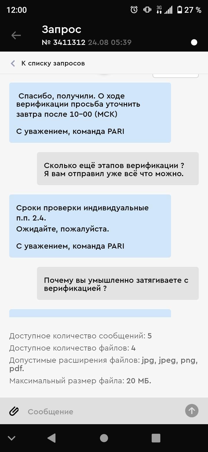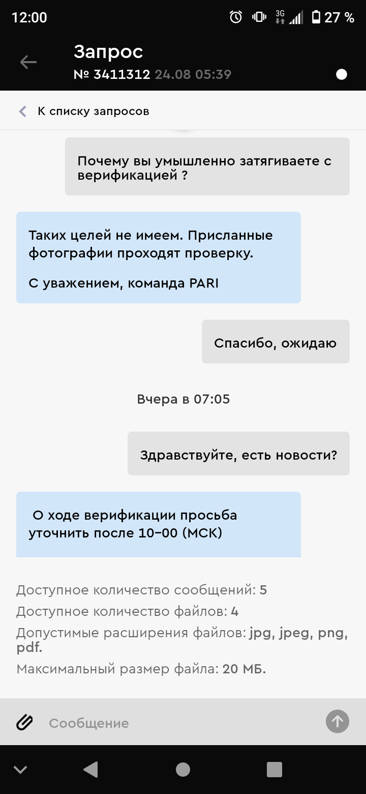 Зачем вы создаете повторные жалобы? Я же вам уже отвечал. Оснований жаловаться на задержку проверки пока нет. Верификация у вас не стоит на месте, вы предоставляете документы, вам контора оперативно отвечает. Обратитесь с уточнением завтра, как вам и указали в ответе от БК.