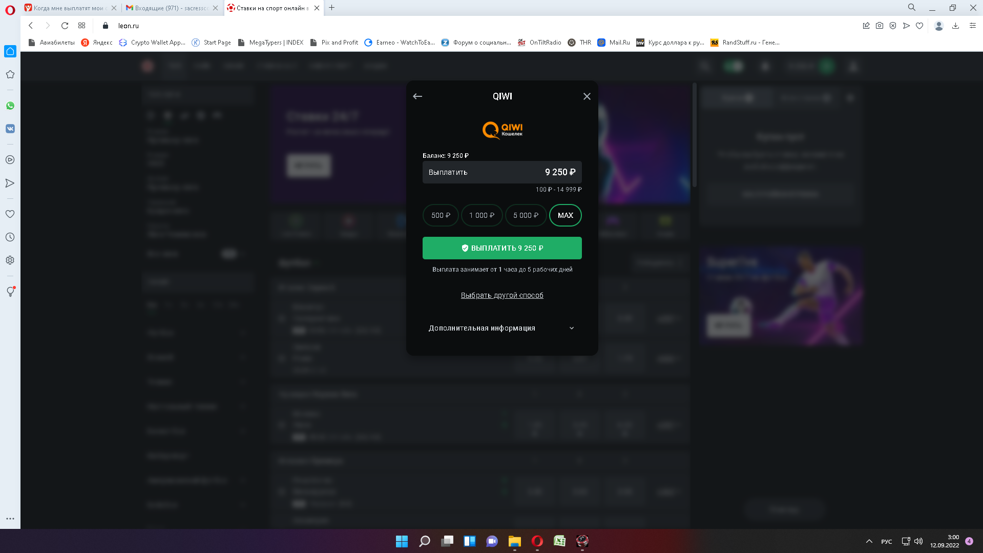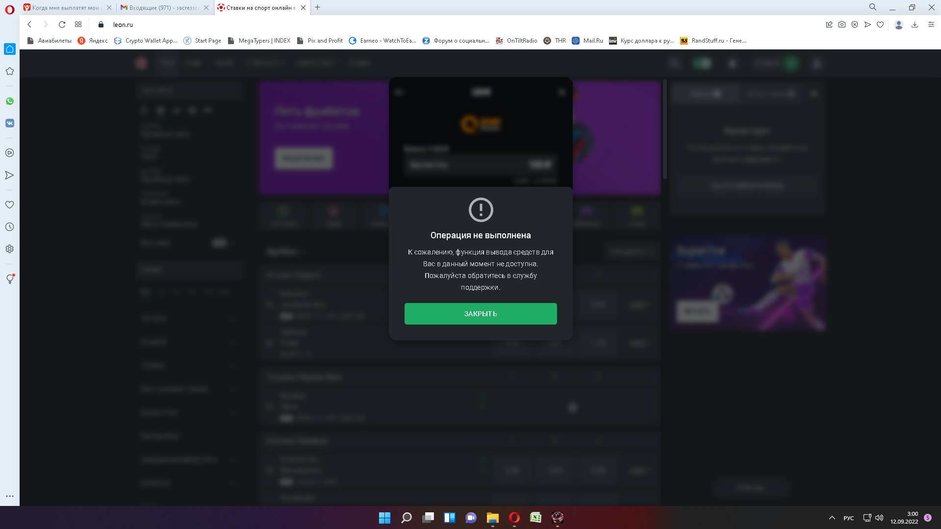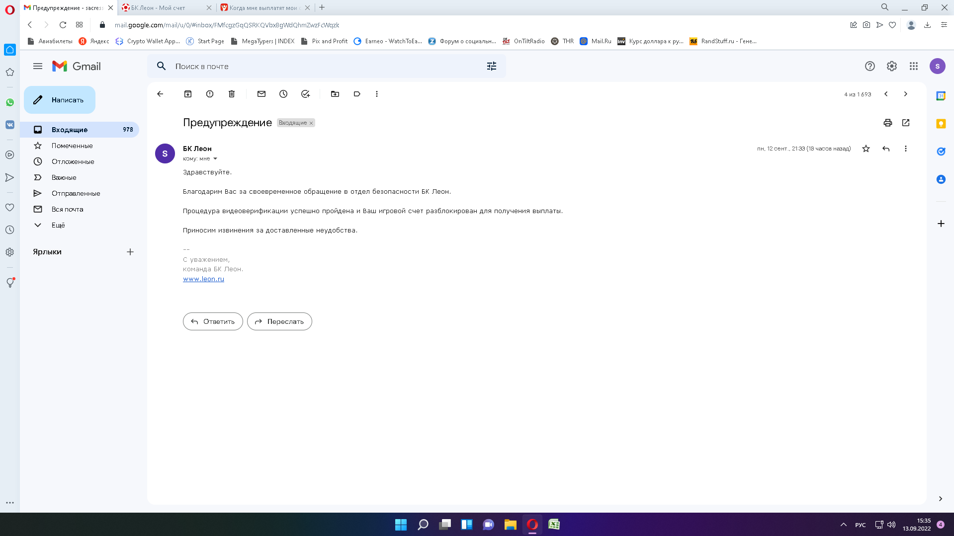 номер счёта Счет: 65216765 в бк конторе leon при заказе выплаты денежных средств прошёл верификацию и фейс верификацию поставил выплату 9250 рублей отклонили прислали вот такое письмо Здравствуйте. На данный момент Ваш счет проходит стандартную проверку в отделе безопасности БК Леон в соответствии с пунктом .4 Правил БК Леон. На время проверки, которая может занять до 30 дней, действия на Вашем игровом счете были временно ограничены. В течение указанного периода на Ваш электронный адрес поступит письмо с дальнейшей информацией. Просим Вас ожидать оповещения на Ваш e-mail. прошла уже целая неделя не могу вывести деньги удалили историю ставок историю пополнений