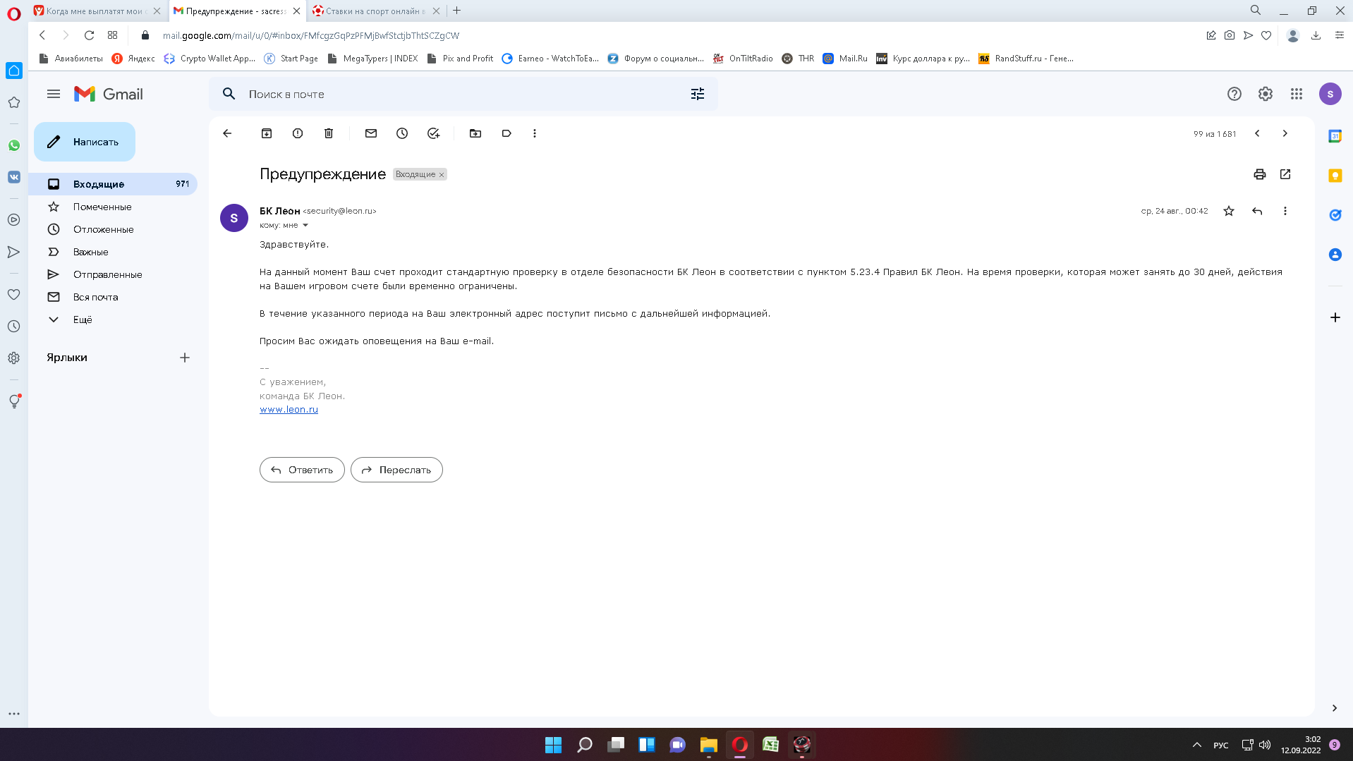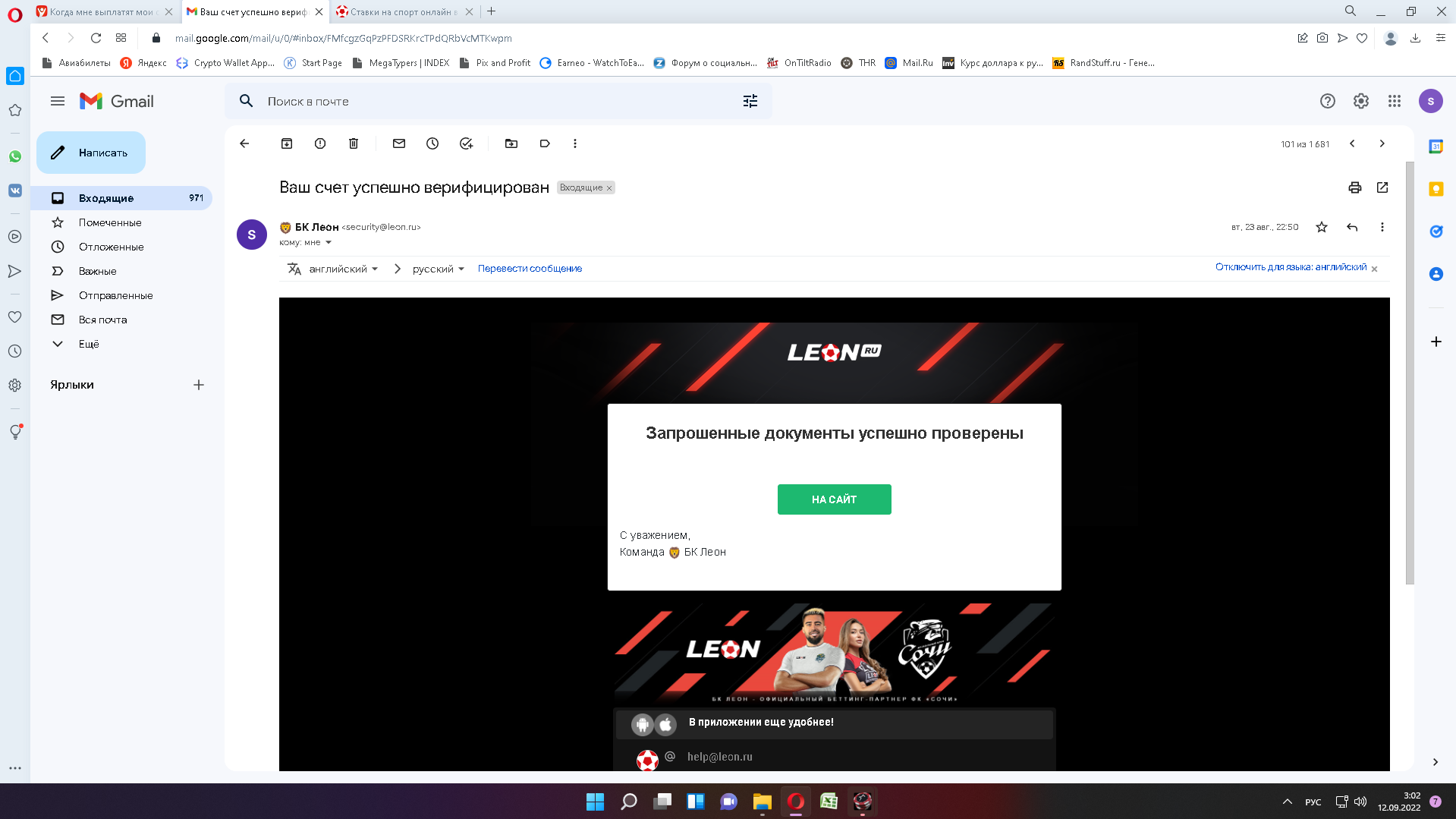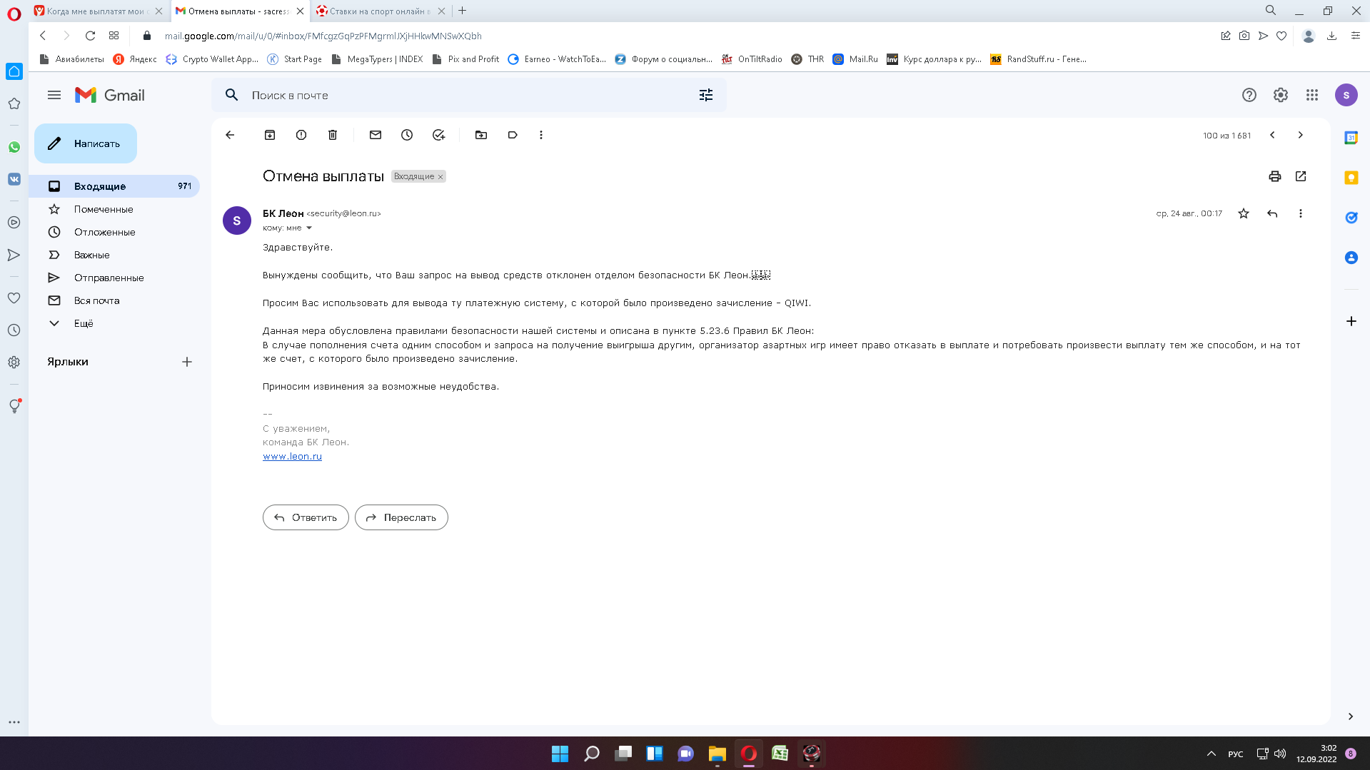 6.09.2022 была верификация сегодня 12.09.2022 прошло уже более 5 дней с момента видеоверификации нет сообщений на электронной почте деньги до сих пор не выводятся
