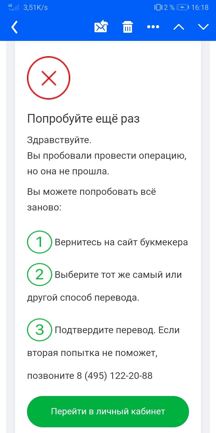 Цупис вот такое на почту отправляет, а в бетсити просто красный! знак. Теперь я е знаю, что делать, ставить там не могу, вывести тоже