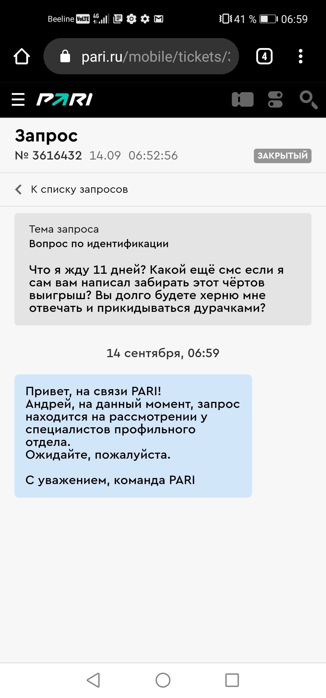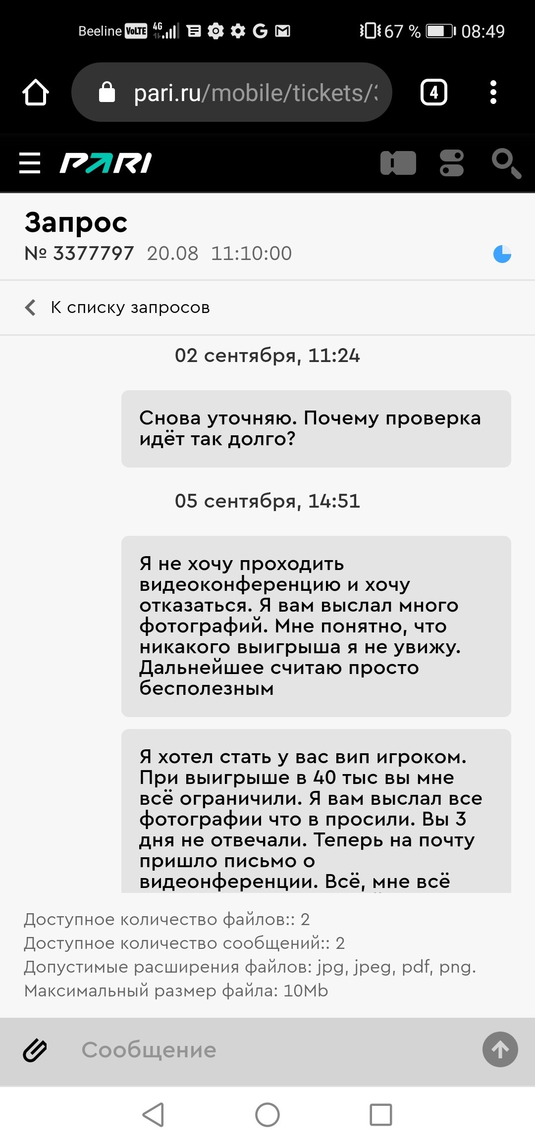 Счёт 21180511. Я хотел стать у них вип игроком. Но когда вышел вплюс всего на 40 тыс они мне всё ограничили. Я им выслал все фотографии что они просили. Высылаю недели две, паспорт, карта, как в ФСБ. Потом они 3 дня не отвечали. Теперь на почту пришло письмо о видеонференции. Всё, мне всё ясно и не надо ни копейки их денег. Как мне забрать свои деньги, они мне просто не отвечают. Что им надо ещё, я не хочу никакого выигрыша, пусть оставят себе на очередные рекламы по тв?