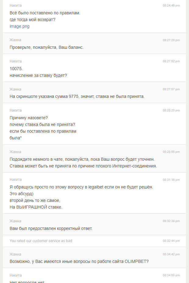 Я предоставил всё доказательства поддержке ,но ситуация не решилась.